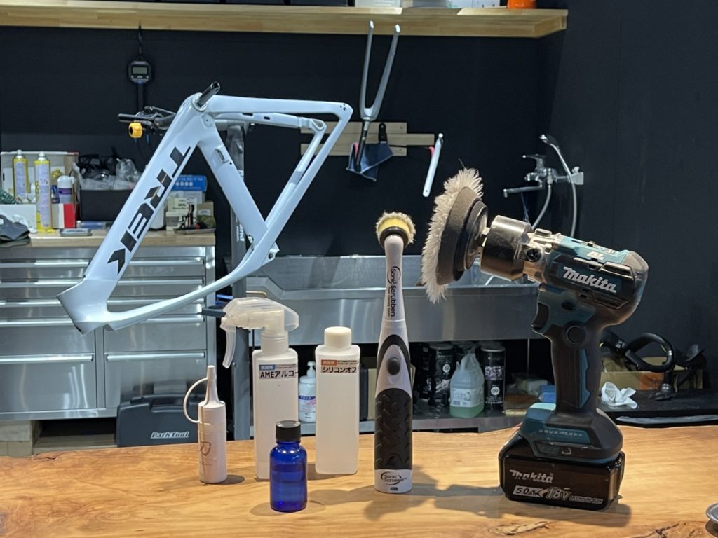 ※BBが装着したままなのはコーティング施工に際してフレームをよく固定できるためです。