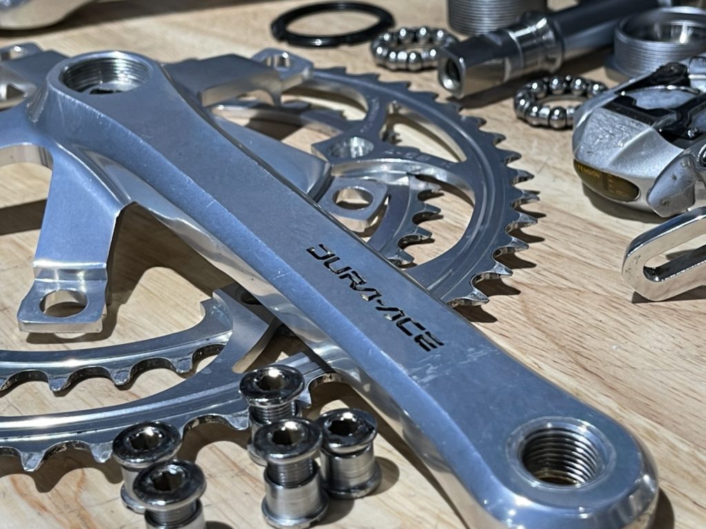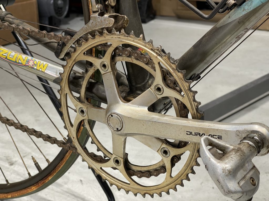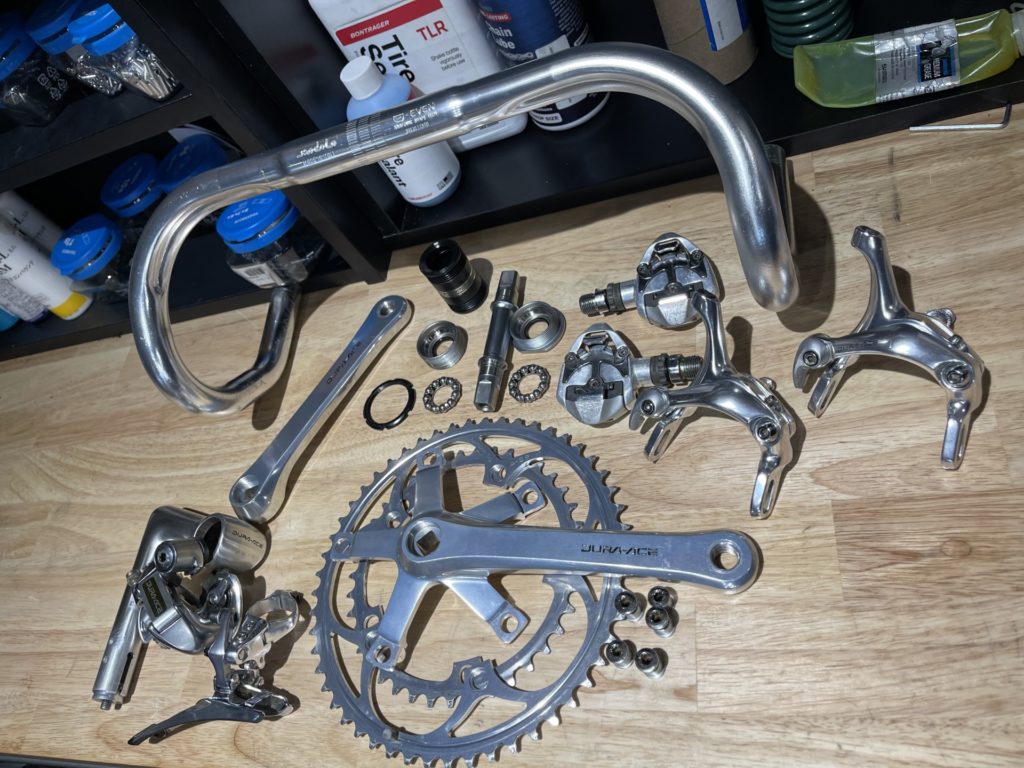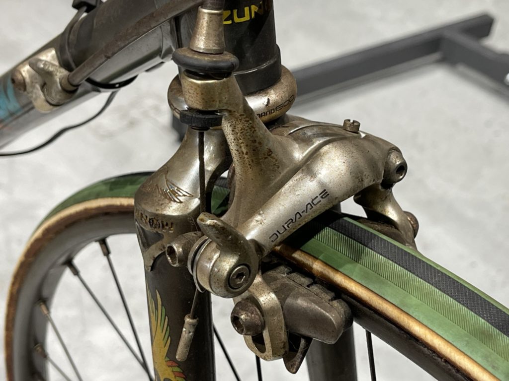 チューブラータイヤはパンクし、ホイールの回転は渋く、クランクはうまく回らず、ブレーキレバーは操作後リリースされず、シフティングに関してはupもdownもできない状態でした。