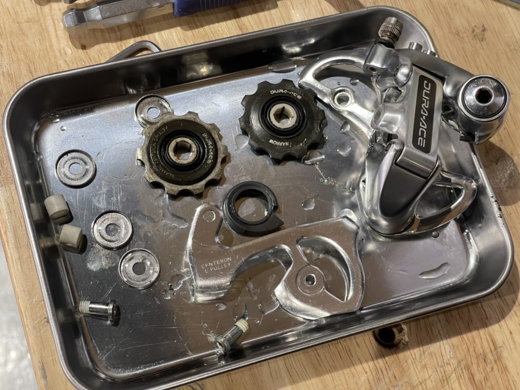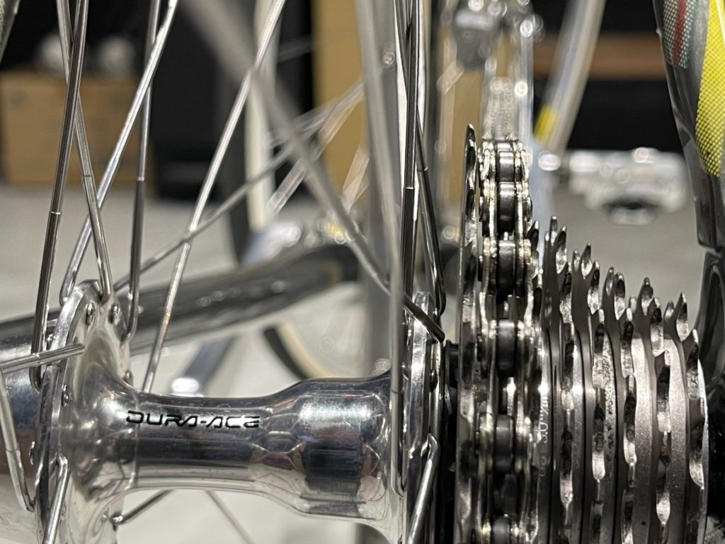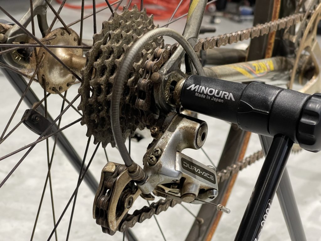8段変速のオールドDuraAceの為、パーツが破損した場合には補修パーツも出ていない、また作業を進めてみないとコンディションをどこまで改善させられるかは分かりません、とお伝えしました。