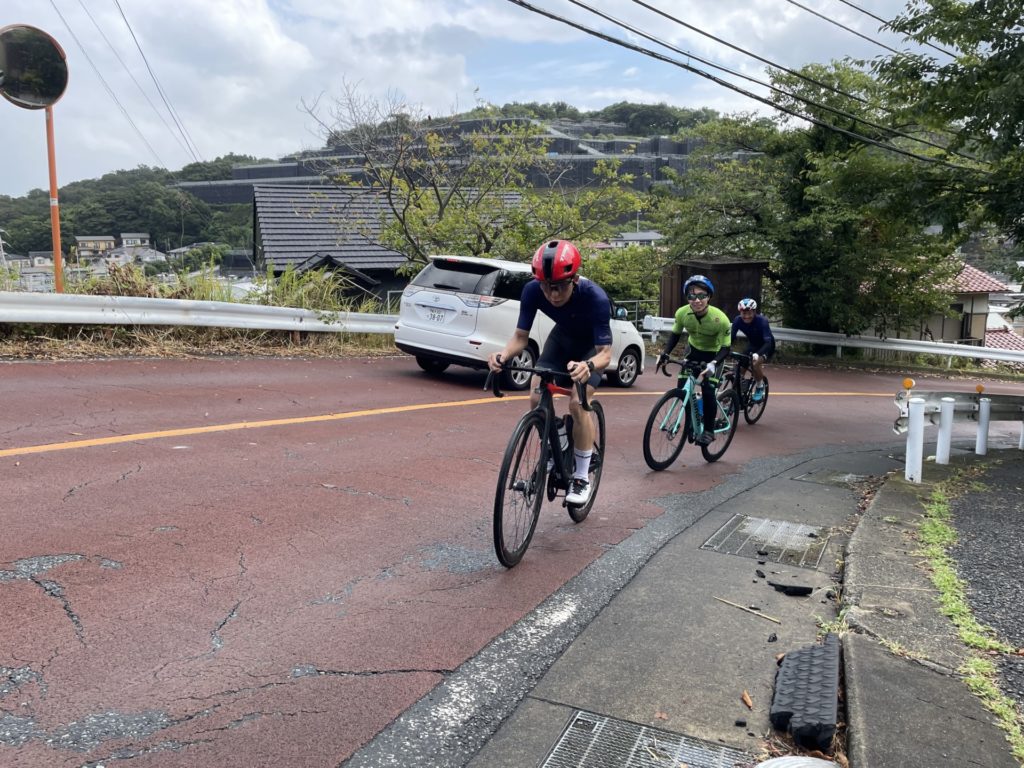 メインはアップダウンの多い鎌倉山を巡るライド、なかでも「ロードバイクを始めた人にとって激坂挑戦への第一歩」と瀬谷が勝手に決めている坂が「鎌倉山スイーツ坂」、誰が名付けたのかは分かりませんがStravaでもこの名前で登録があるこの坂は距離800mで獲得標高66m、平均勾配は8%ながら登ってすぐにぶつかる急カーブでは最大で17%の斜度があります。