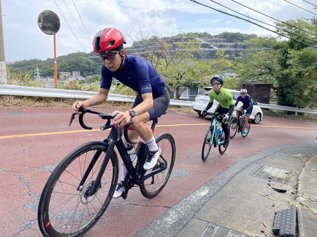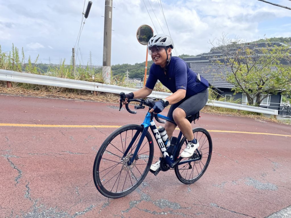 若手メンバー2人のペースアップについていくH様、10,20代の二人に対し50代と年齢差はありながら笑顔で登っています。そんなH様の相棒はTREKの電動アシストロードバイク「Domane+ AL 5」。