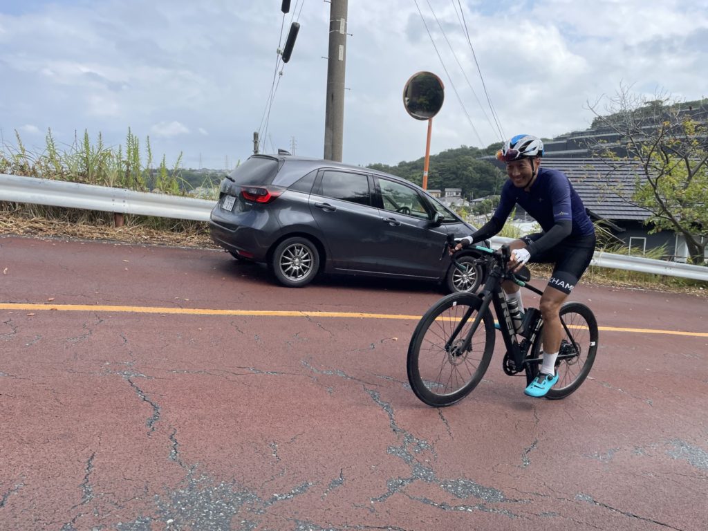 以前はペダルバイクに乗られていたH様ですが、e-BIKEに乗り換えたことで余裕ができ、激坂であっても若手にプレッシャーをかけつつ登ることができます。