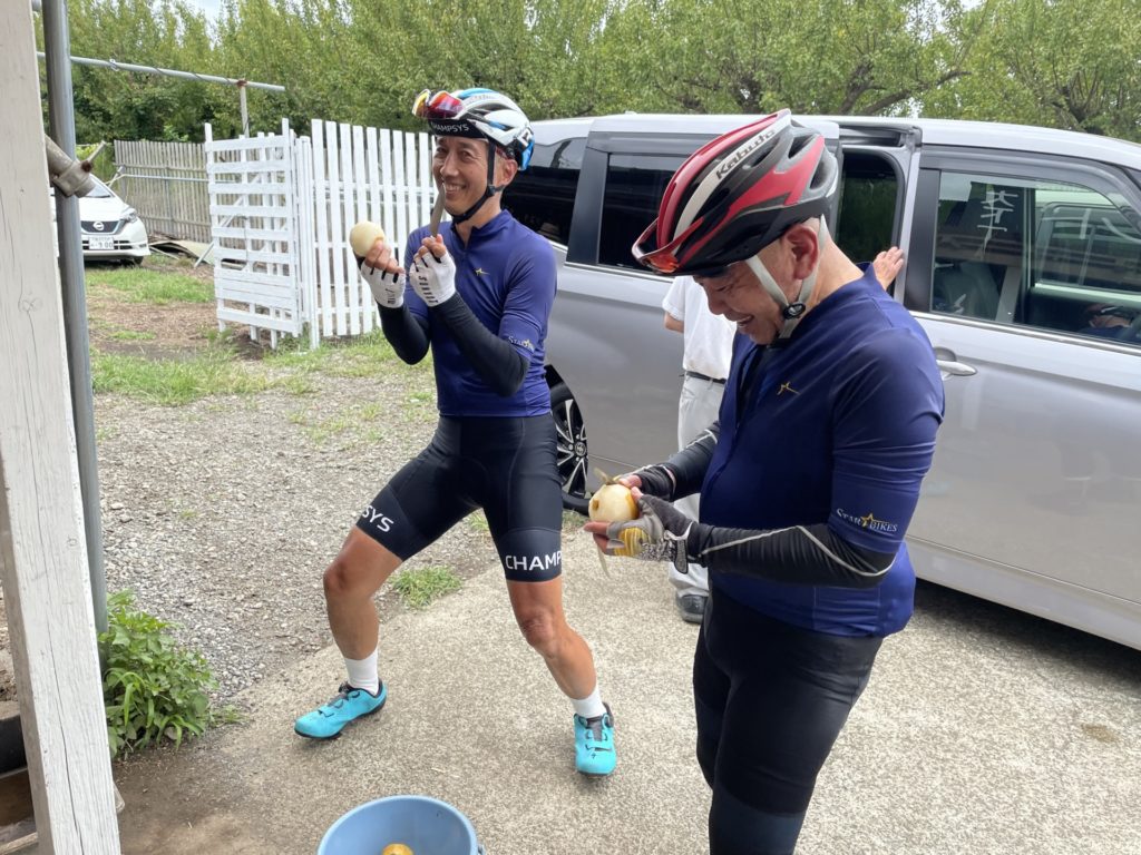 今回は予定より早くお店近くまで戻ってこれたので、遊水地公園の隣にある大下園さんのフルーツスタンドにも立ち寄りましたよ。