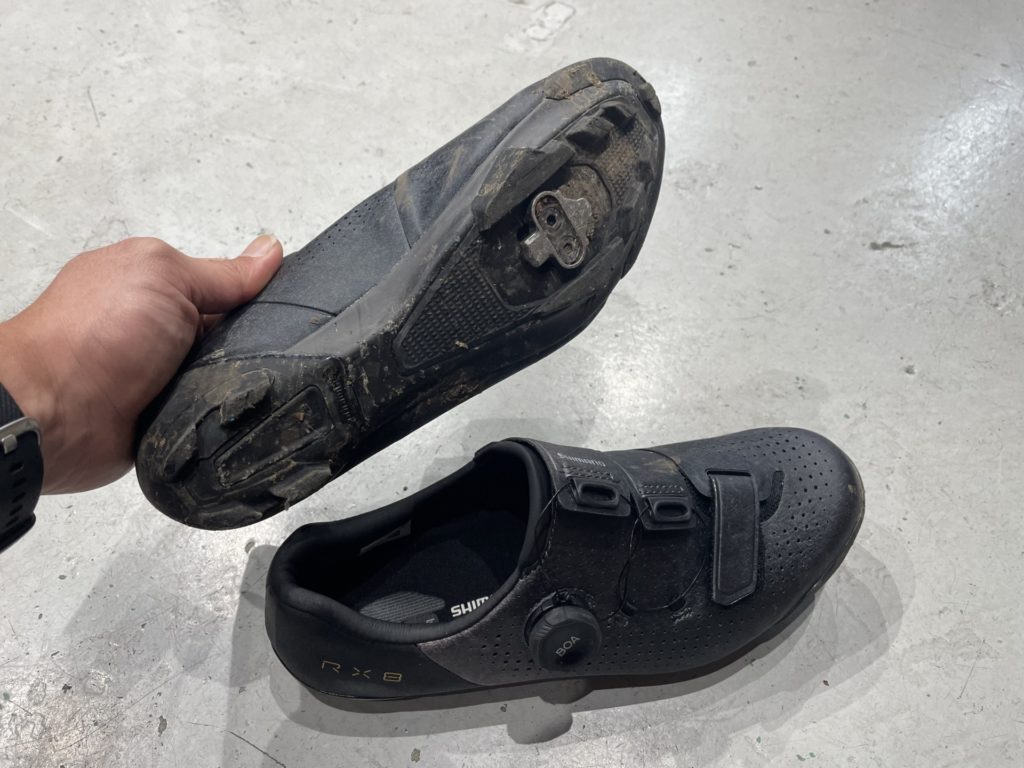 シューズは同じくShimanoのグラベルライド用モデルのRX8、濡れた路面や階段でも歩きやすいので、様々な場所を訪れるステップアップライドでもSPDはお薦めです。