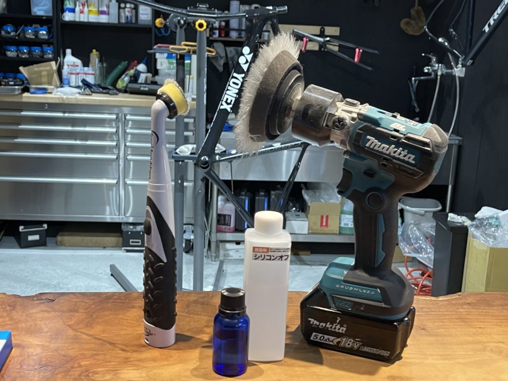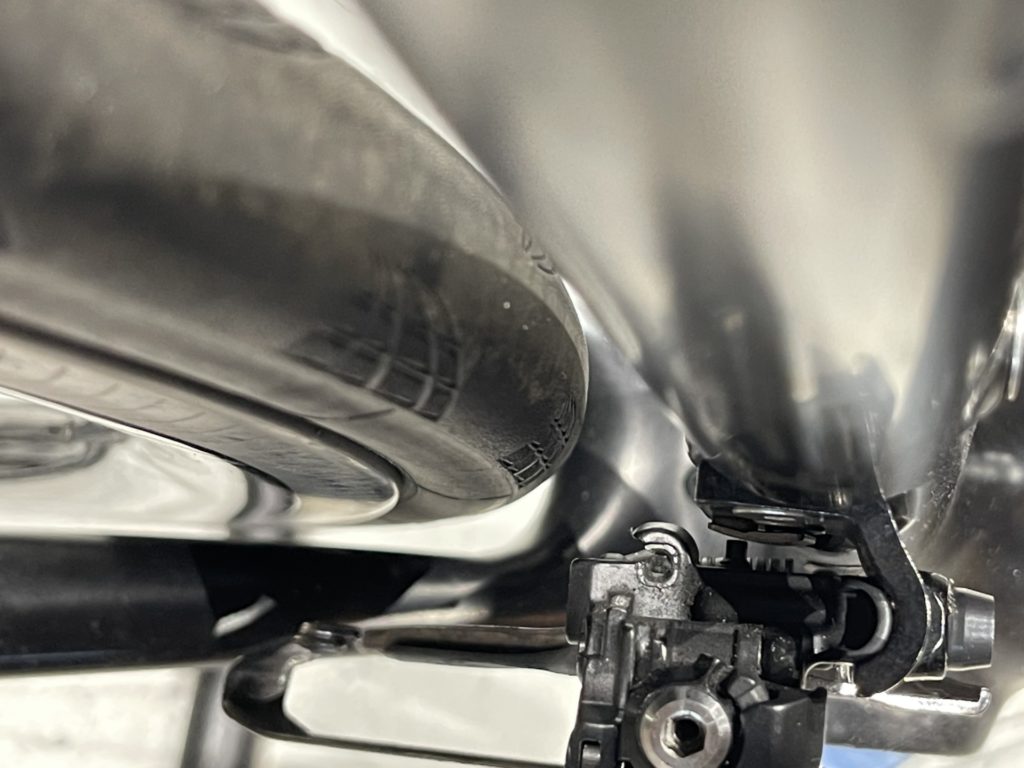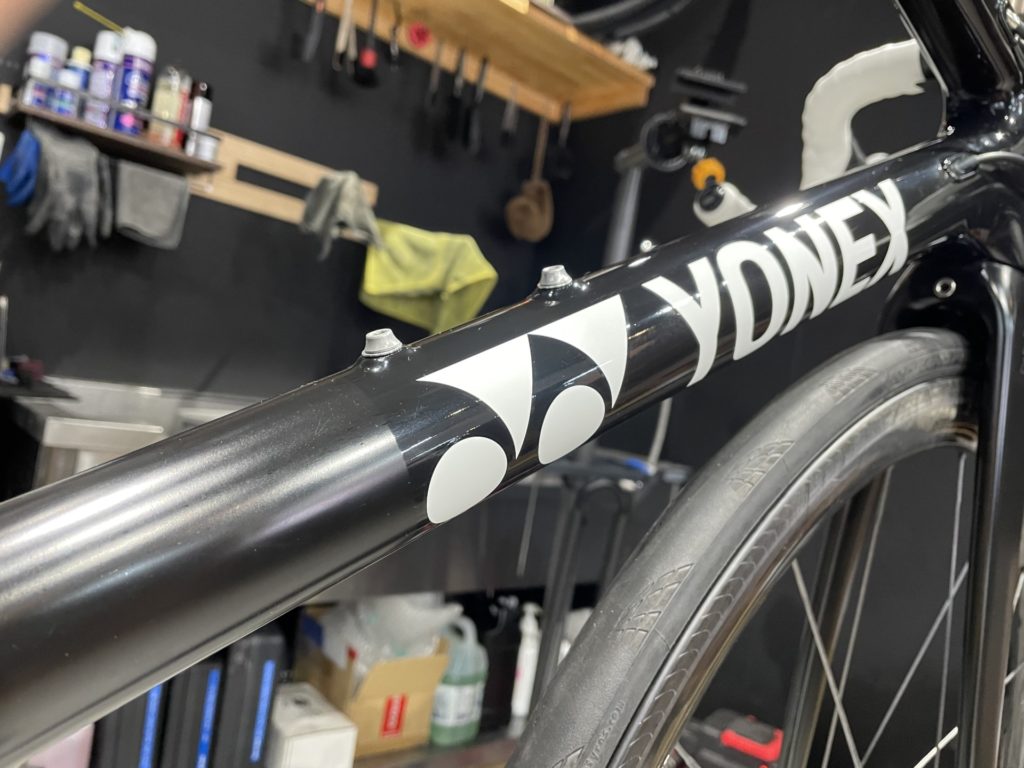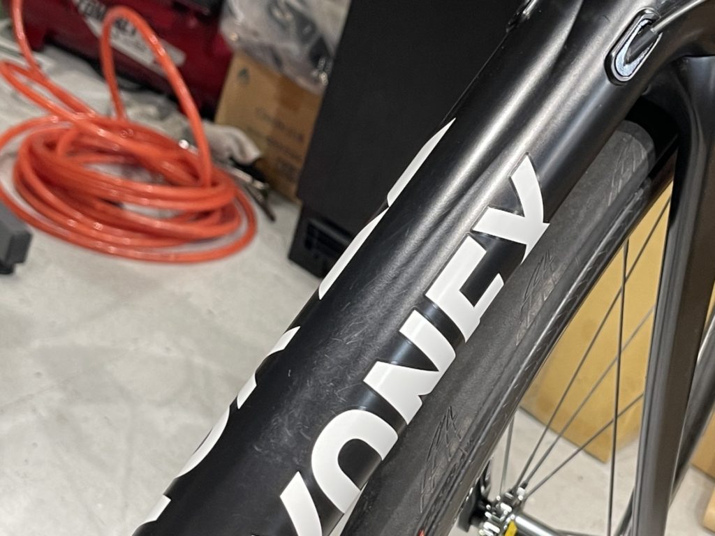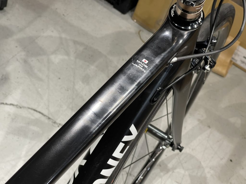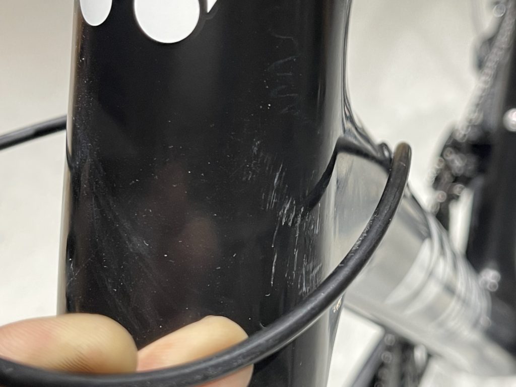 希望の作業を伺いますと、オーバーホールに加えてフレームに取り付けていたバッグがフレームと擦れて小傷が多くなっているので綺麗にしてほしい。とのこと。