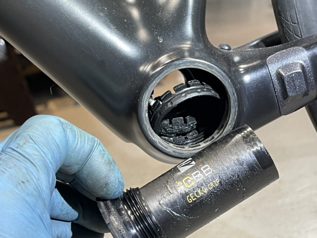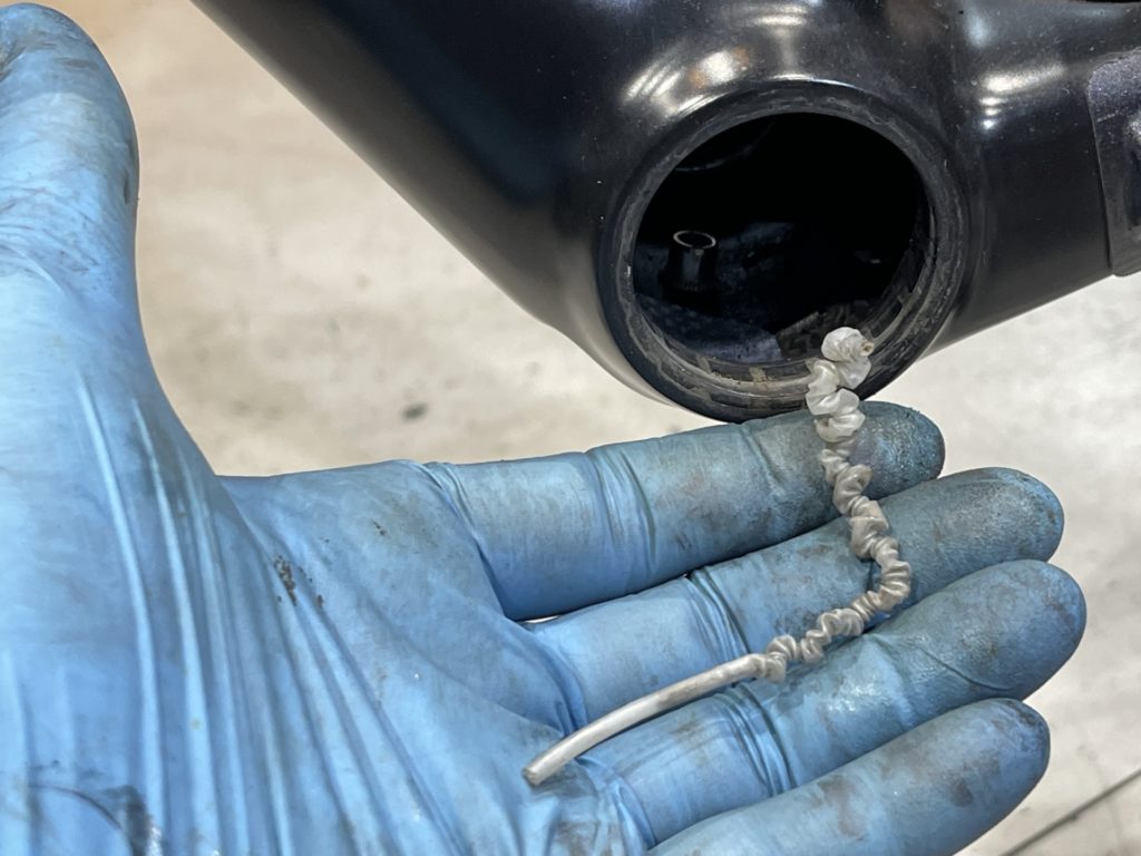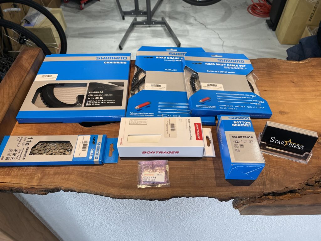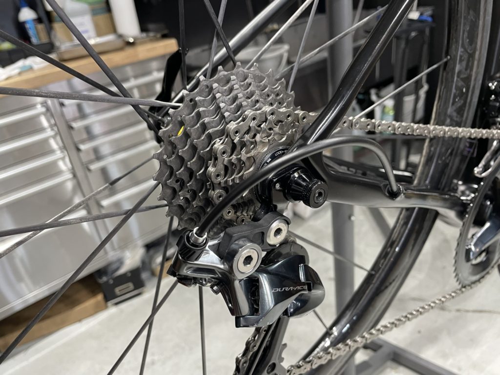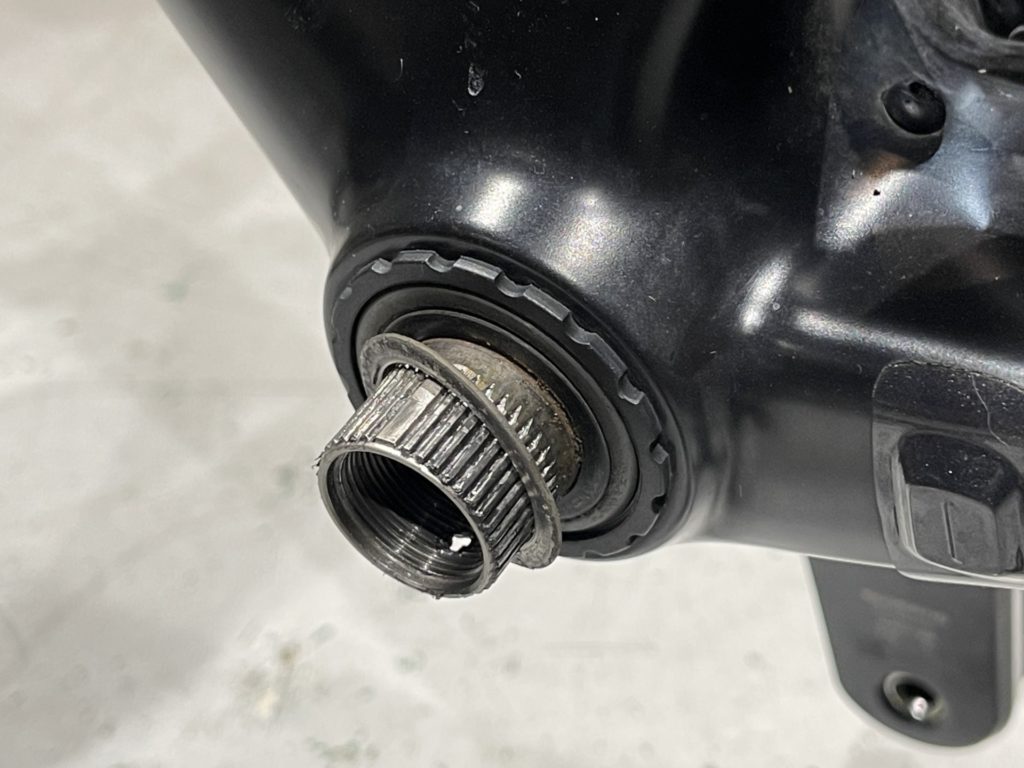 希望の作業を伺いますと、オーバーホールに加えてフレームに取り付けていたバッグがフレームと擦れて小傷が多くなっているので綺麗にしてほしい。とのこと。