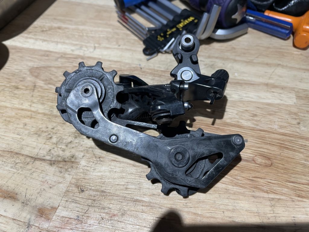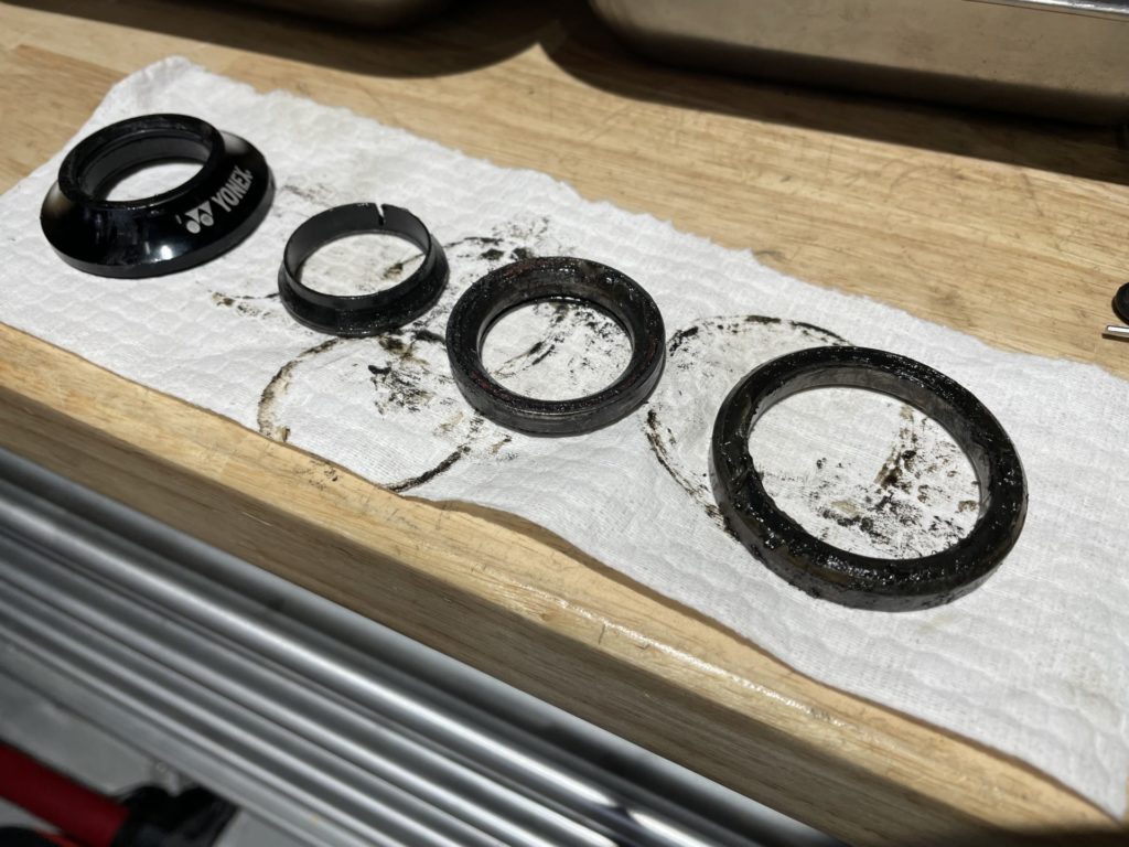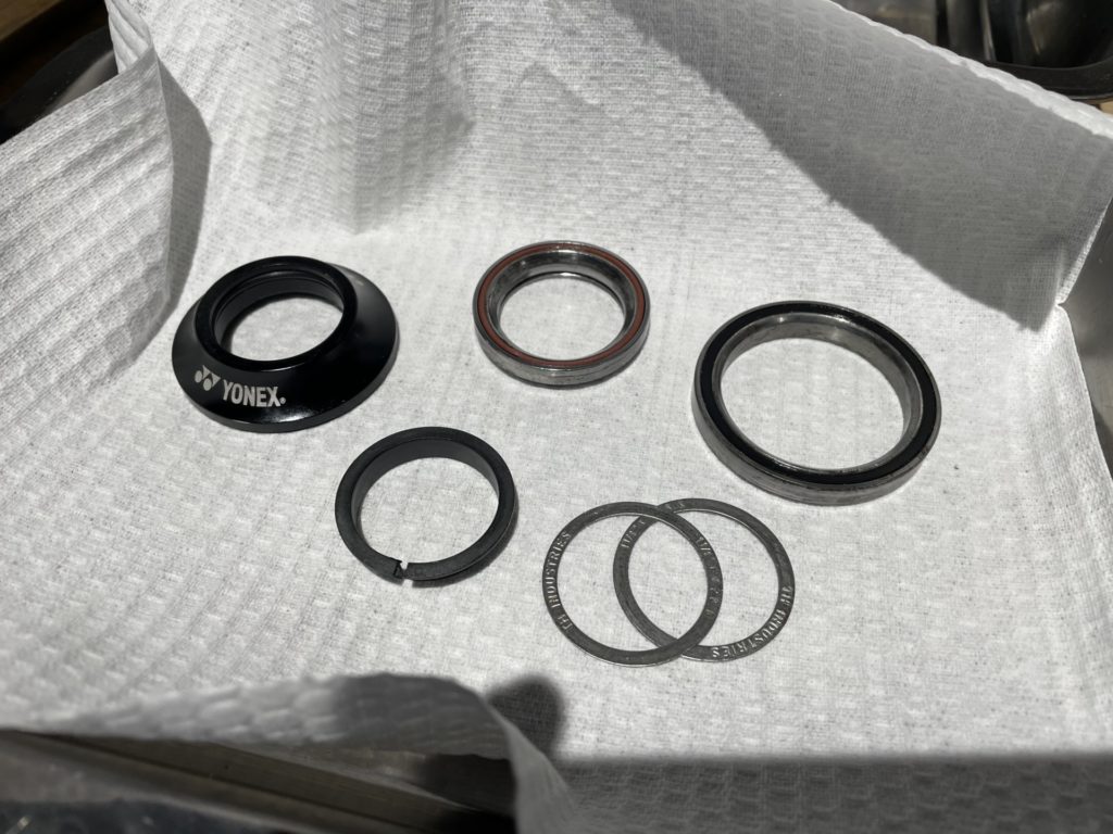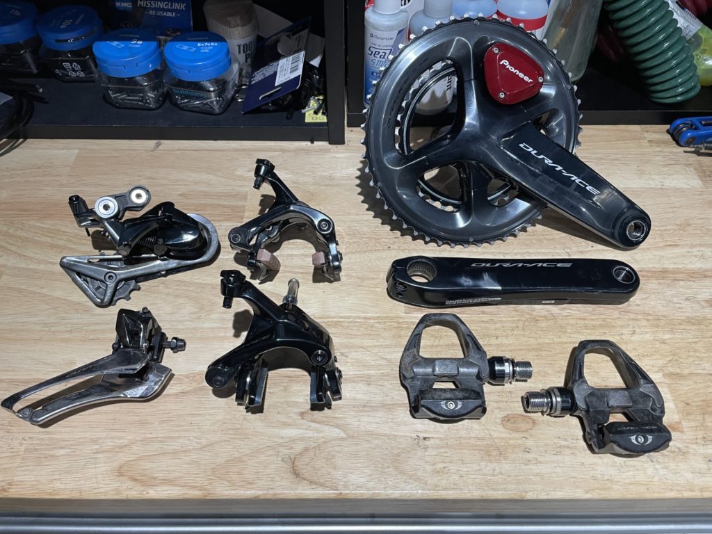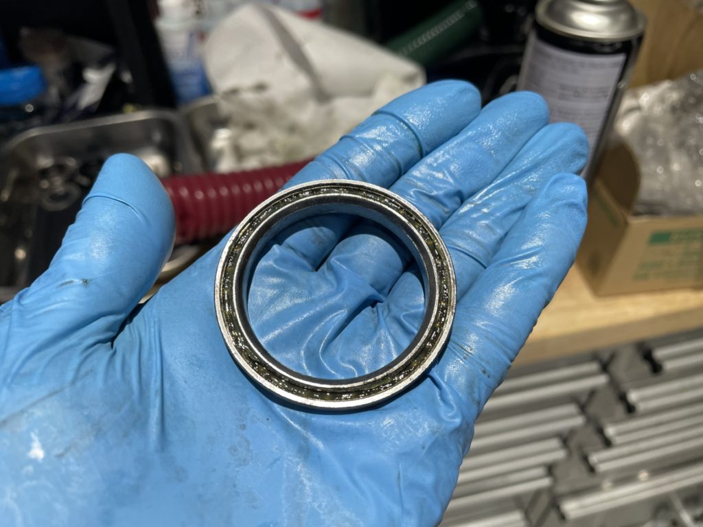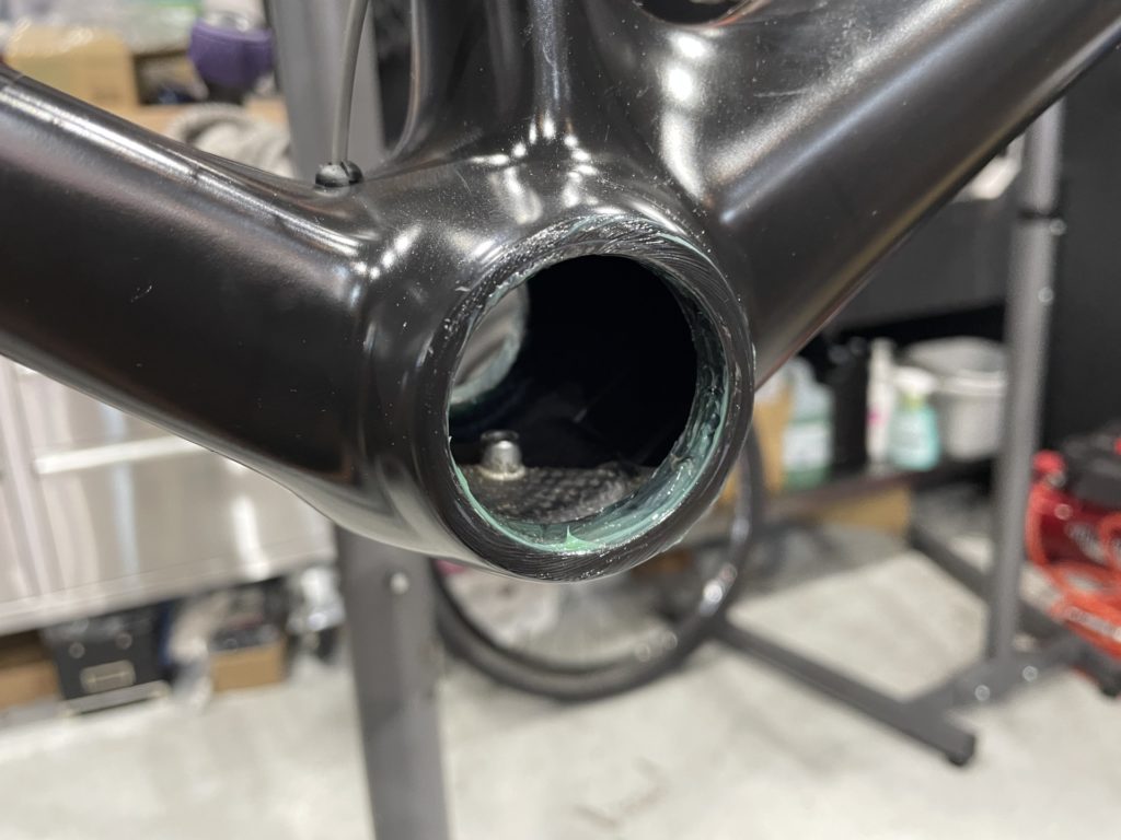 希望の作業を伺いますと、オーバーホールに加えてフレームに取り付けていたバッグがフレームと擦れて小傷が多くなっているので綺麗にしてほしい。とのこと。