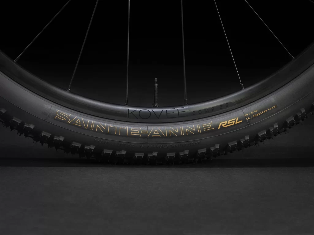 | タイヤ | Bontrager Sainte-Anne RSL XR, チューブレスレディ, デュアルコンパウンド, アラミドビード, 220 tpi, 29×2.40インチ |