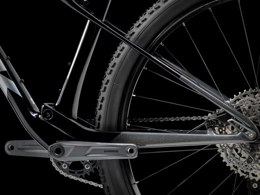 - ピボットのないシートステーは軽量化に貢献し、積極的にしなることでトレイルの振動を吸収する