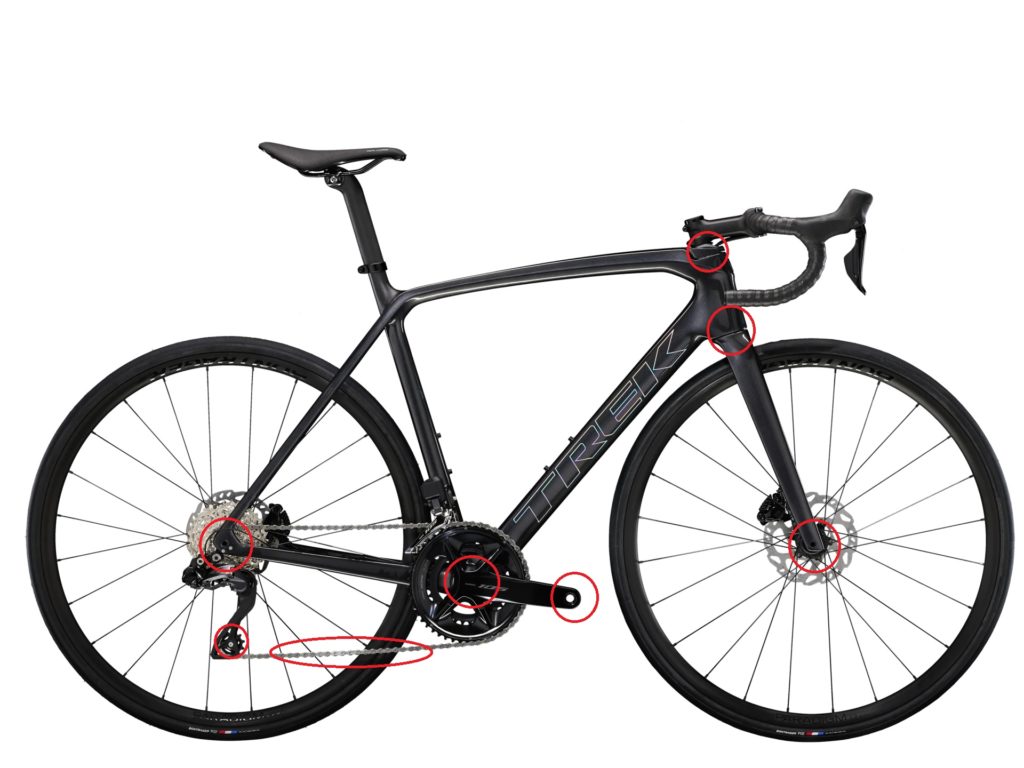 ロードバイクにはあらゆる箇所にベアリングがあり、それぞれ回転において摩擦・回転抵抗があります。