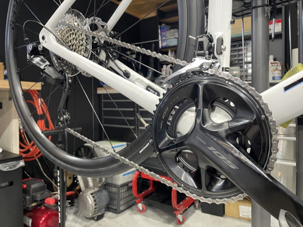 今回は最初からビンディングシステム「SHIMANO SPD-SL」を取り付け、ご納車準備をさせて頂きました。