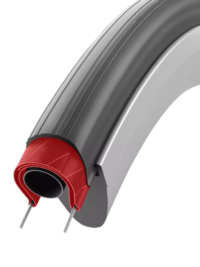 またグリップ性能はグラフェン + シリカ コンパウンドを特徴としています。これは、Vittoria のロードレーシングタイヤ向けの最先端のコンパウンド技術であり、特に速度、耐久性、グリップの点でロードタイヤのパフォーマンスを向上させる素材であるシリカを組み合わせています。