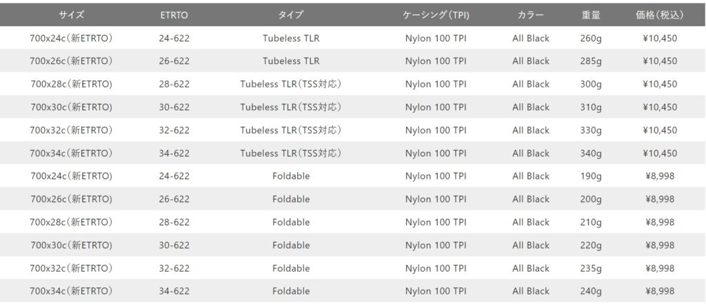 2023年5月にモデルチェンジが発表されたPROシリーズは通常モデルとパリルーベの石畳を想定しパンク耐久性に優れたCONTROL、タイムトライアルで結果を出すために特化したSPEEDの3モデルがあります。