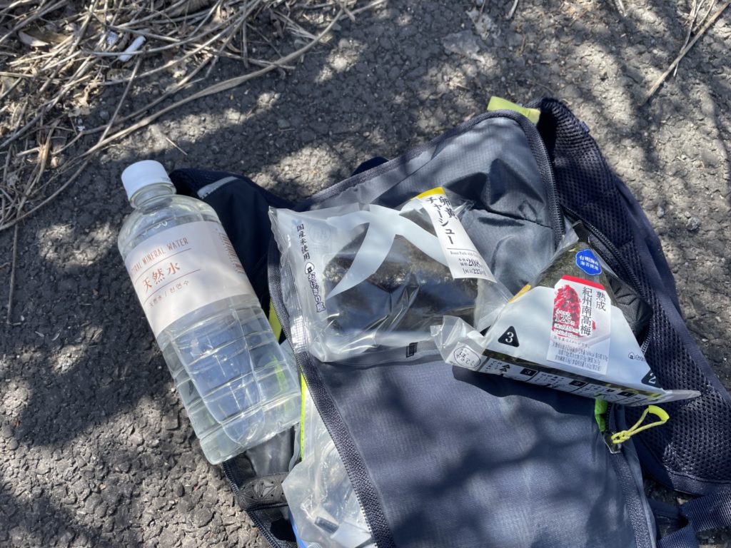ここではおにぎり2個を購入、固形物は消化からエネルギーに変るまで時間がかかるため早めの補給が大事になります。