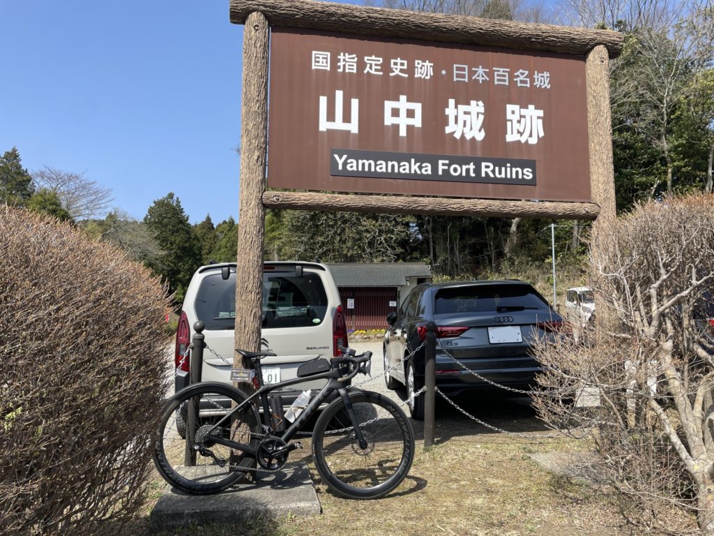 箱根やまなみ林道を抜けて、少し登るとPC3「「国指定史跡・日本百名城 山中城跡」看板」に到着。