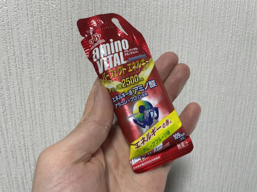 一度の食事でたくさん食べるのではなく、空腹感を感じる前に小まめに補給をするを心掛けていたので、時間差でゆっくり消化してエネルギーに変えてくれる固形物はおにぎりやパンを、その場ですぐにエネルギーにしたいときはアミノバイタルのパーフェクトエネルギーを接種して乗り切りました。