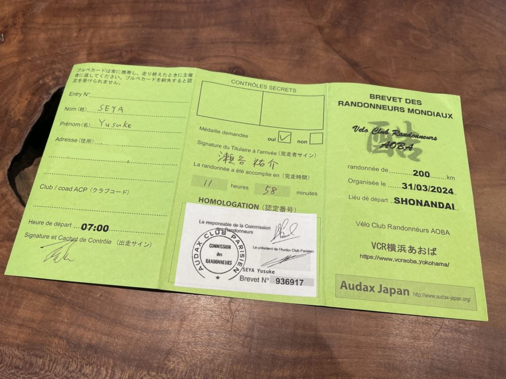 結果としてゴールはできたものの、寝不足とオーバーペースで最初の峠である山伏峠で足を攣り、PC以外の補給箇所を考慮せず、その先の修繕時から南下しコンビニも自販機も見つからない中でハンガーノックになり、ボロボロになった状態で伊東から残り80kmを走って帰るというブルベ初心者ならではの失敗をこれでもかと経験し、軽くトラウマに。