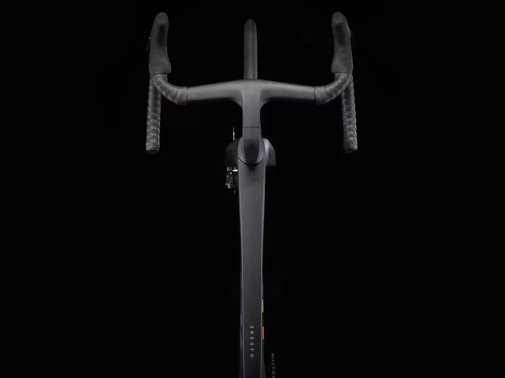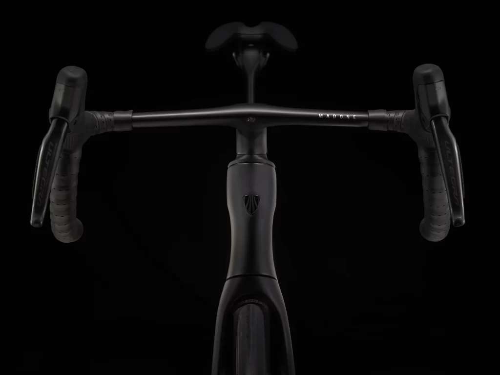 | ハンドルバー/ステム(一体型) | サイズ: 47 Madone一体型バー/ステム, OCLVカーボン, リーチ80mm, ドロップ124mm, レバー部幅35cm, ドロップ部幅38cm, ステム長80mm |