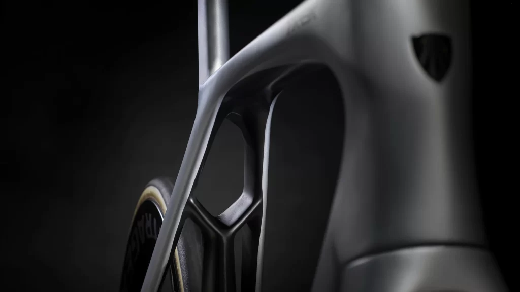 第7世代のMadoneを象徴するシートチューブ上の特殊形状「IsoFlow」は空気抵抗となる気流の渦の軽減効果を発揮し、空気の流れをバイク後方へと流すことで大幅なエアロダイナミクスを生みだしています。
