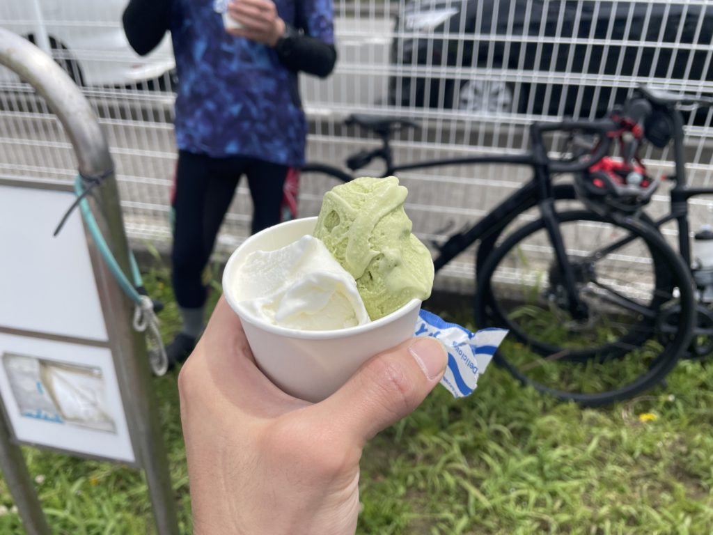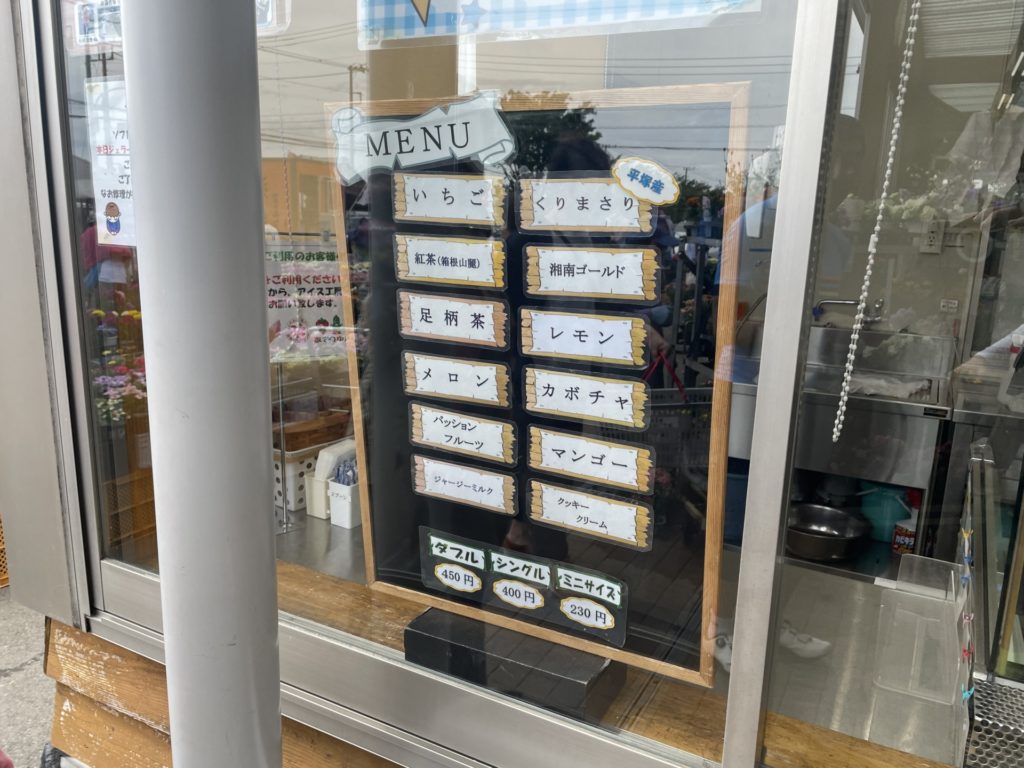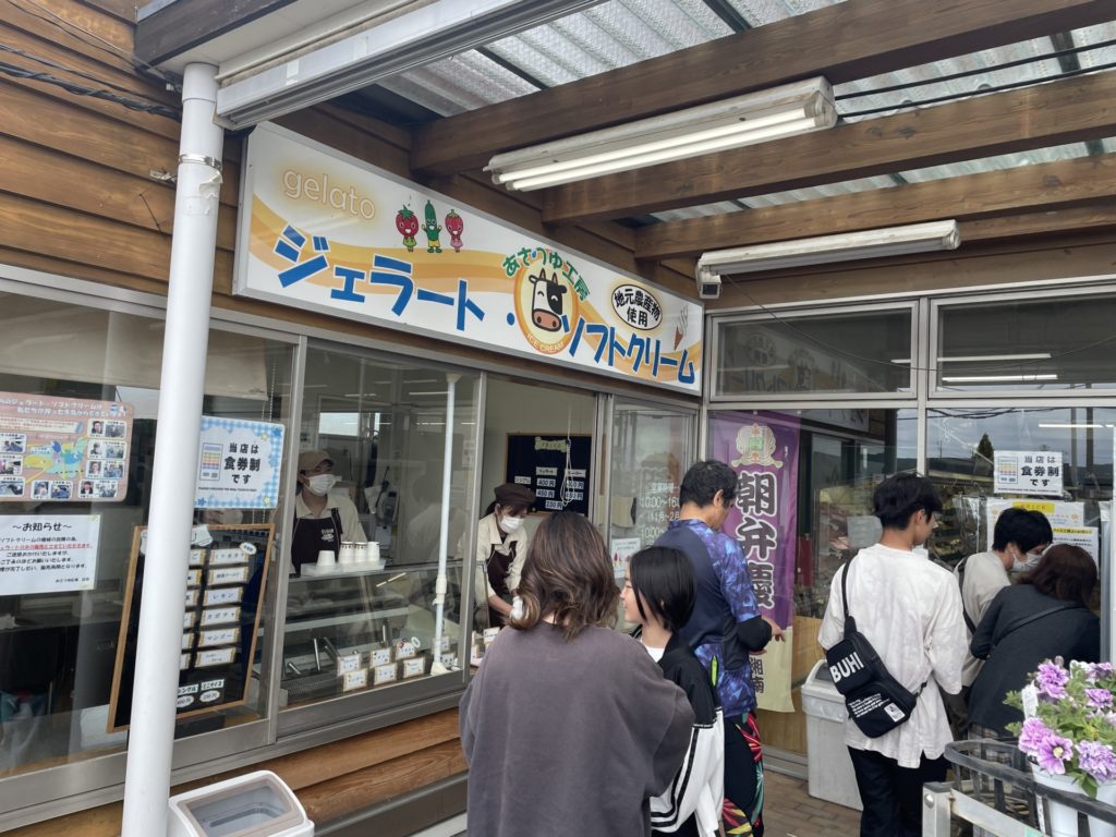 帰りには平塚にあるあさつゆ広場に立寄り、併設されている「あさつゆ工房」で地元の食材を使用したジェラートを頂きました。初めて訪れましたが野菜などがスーパーで買うよりも安い価格で販売されており、敷地の外まで駐車場に入る車の列ができていたり付近は大混雑。多くの人がひっきりなしに訪れており驚きました。
