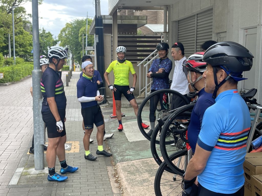 朝8時に集合したらまずはブリーフィングから。今回は事前の案内から一部ルートの変更箇所があり、コース確認を全体で共有し、また風が強い日だったため、横風の注意や集団走行時のハンドサインについて注意を行いました。