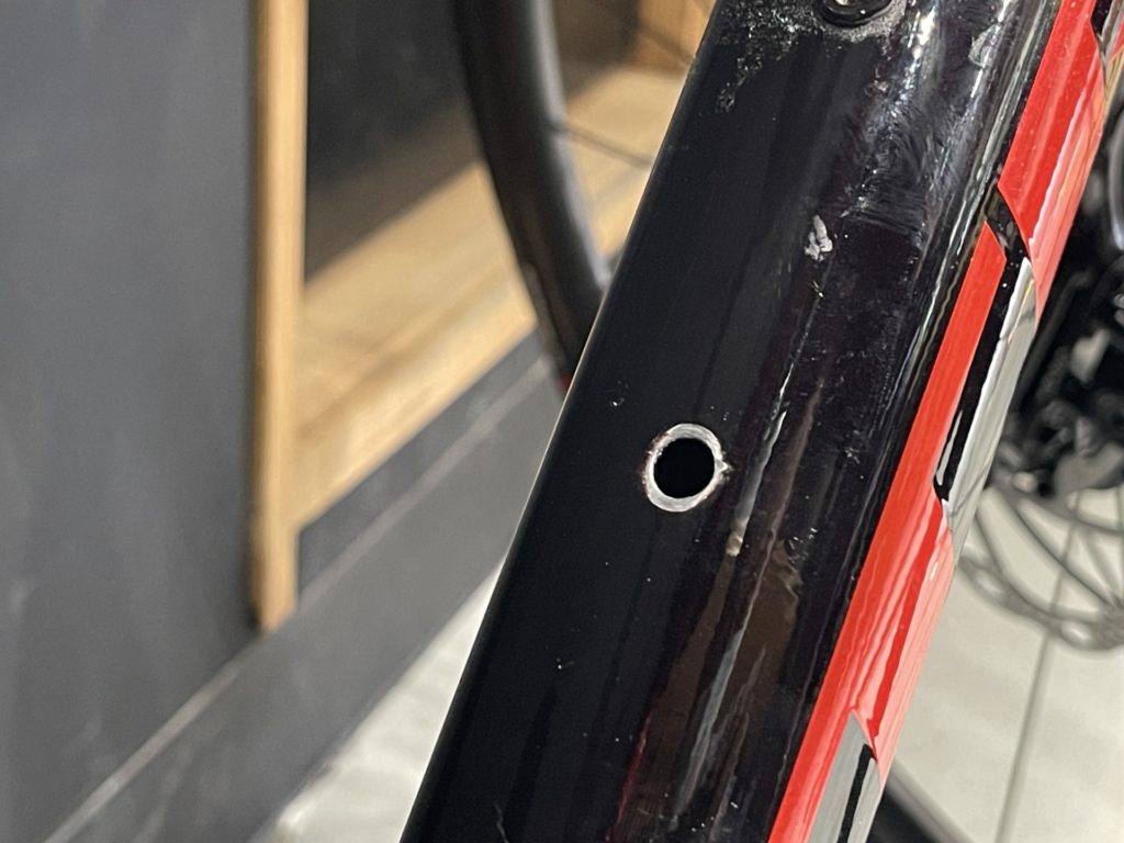 車種によってはシートポストを抜いて逆さまにすれば取り除けるかもしれませんが、「クランクやBBの取り外し作業」や「フォークの脱着作業」に加え、フル内装ケーブルルーティングの場合はケーブル類の交換作業が必要になる場合もございます。
