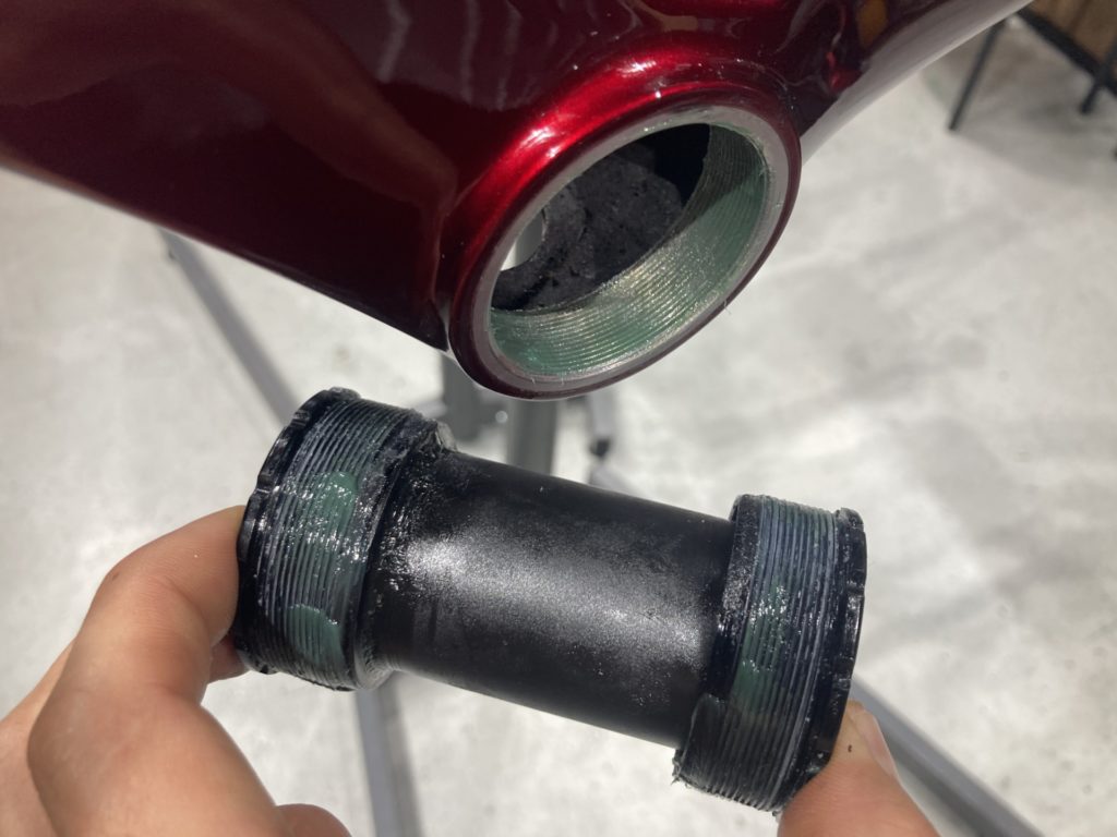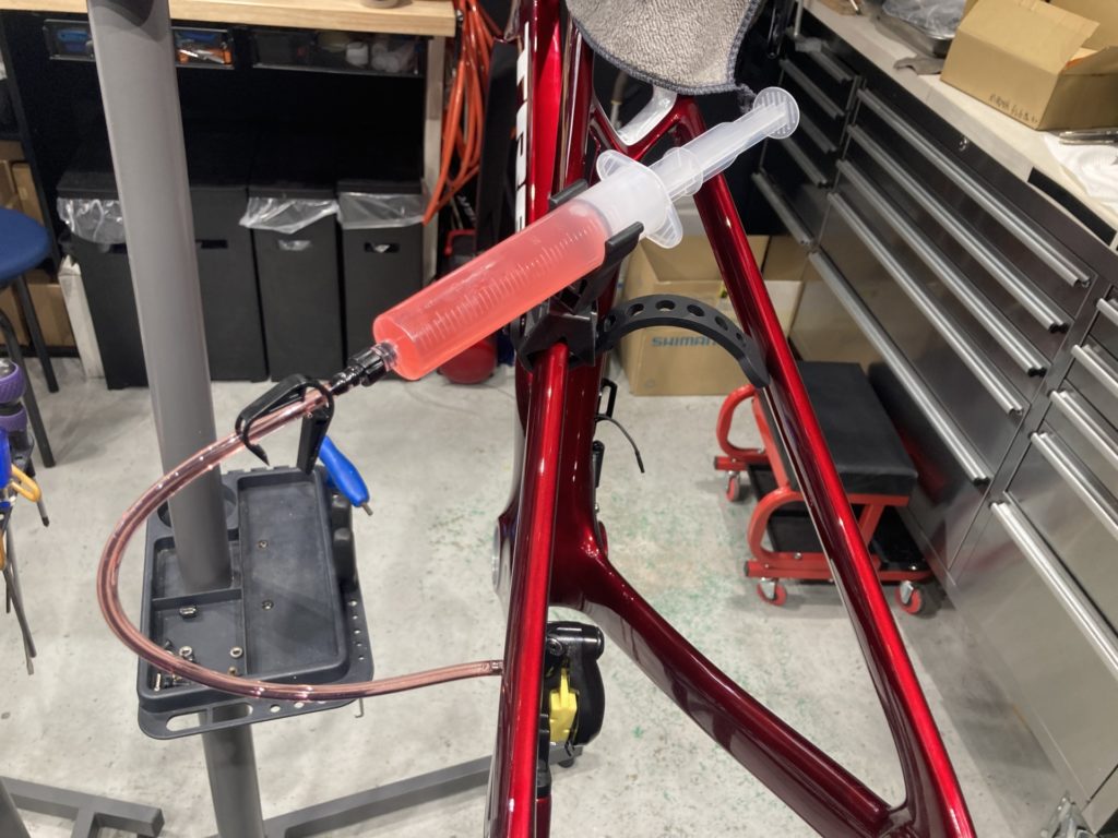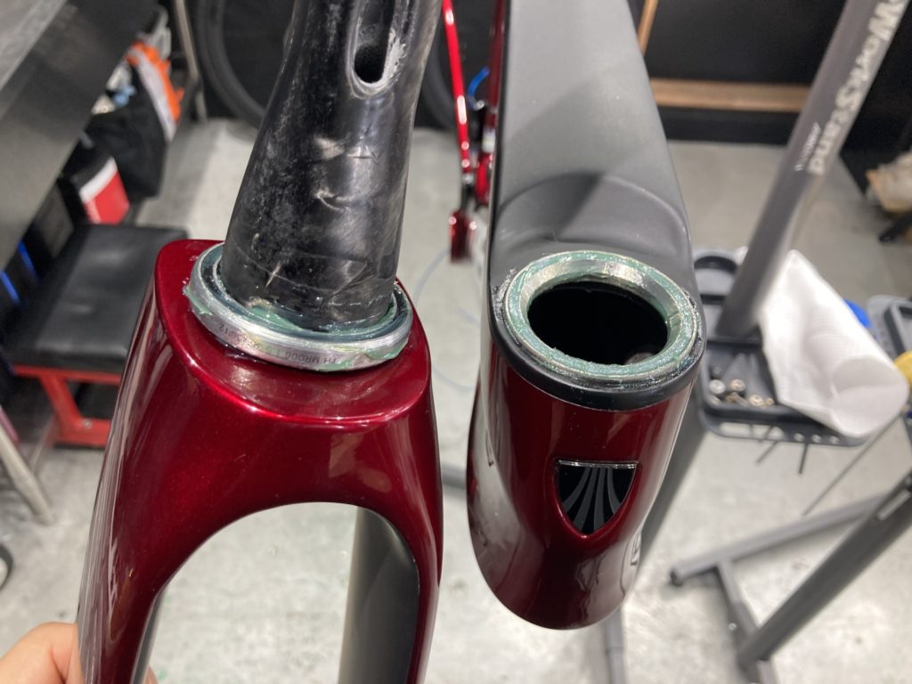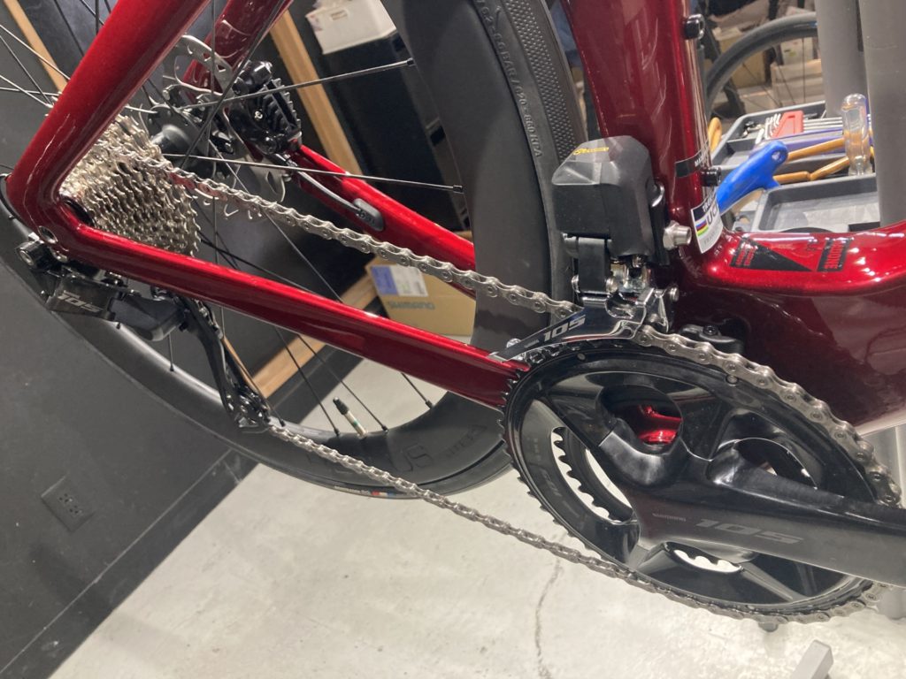 お話をお伺いした上で、車体を確認させていただきますと、明らかにサイズが合わない車体にお乗りになられていました。ロードバイクは長時間同じ姿勢で運動を続けるスポーツになりますので、身体に合っているサイズに乗ることは絶対条件です。また自身の体に最適化させるフィッティングを行うと体の一部のようにロードバイクを纏うことができるようになります。