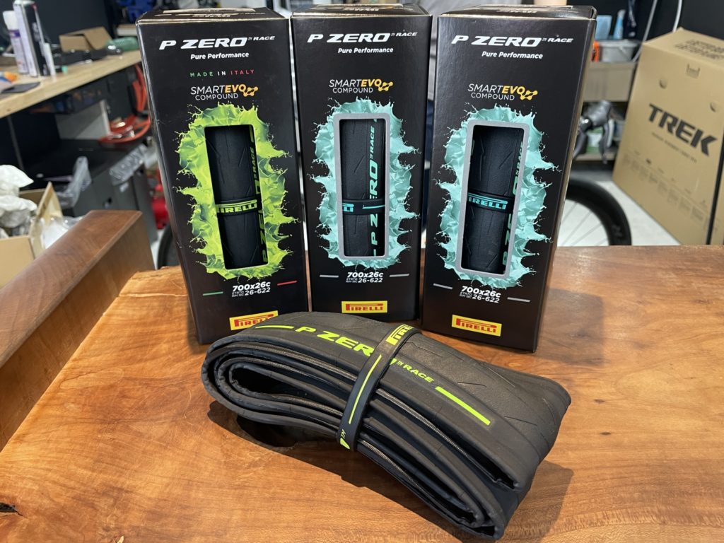 タイヤはチェレステカラーが好きなお客様のご要望に合わせてPIRELLI P-ZERO RACE クリンチャータイヤ チェレステカラーをお取り付けいたしました。