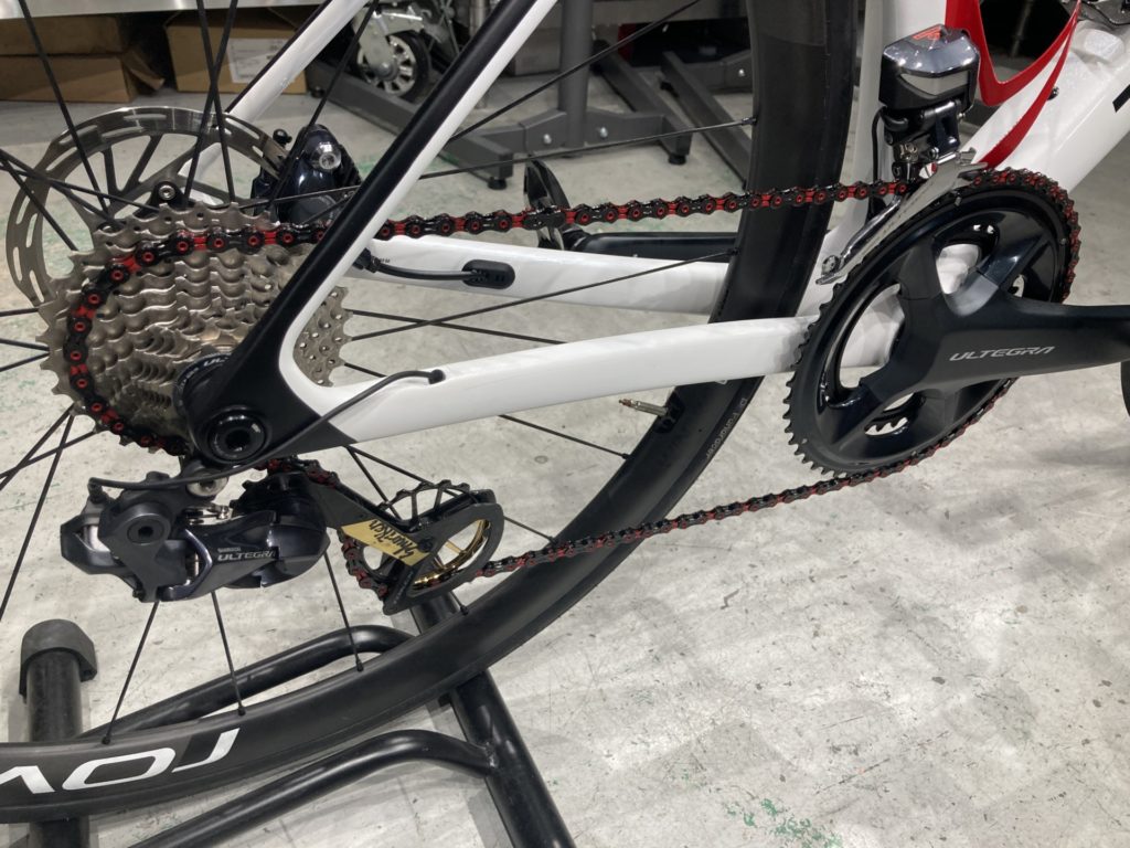 TREK Madone SL 5 GEN 8 ×納車 + パーフェクト組み立て + ガラスの鎧 + カミナリの鎧 + Di2 + カーボンホイール 2024 12/15 メカニックブログ 2024年8月9日2024年12月15日 第1世代のMadoneが登場したのは2003年。2014年には軽量ヒルクライムバイク<Emonda(エモンダ)>が誕生し、その後Madone GEN 5は空力性能に振り切ったエアロロード路線を邁進しました。そして10年の時を経た2024年6月、Emondaは再びMadoneと融合を果たし、<Madone GEN 8>としてフルシステムフォイルエアロ形状を完成させました。TREKオフィシャルサイト「Madoneの進化」はこちら 今回「トレック マドン GEN8」をご注文いただきましたのは10年以上もロードバイクを楽しむオーナー。何台もの車体を所有するオーナーはその中から選りすぐりの一台のパーツをMadone SL 5 GEN8に組み替えて仕立てて欲しいとのご依頼でした。そして旧フレームやMadoneから取り外したパーツはSTAR☆BIKESの下取りシステムをご利用いただきました。 梱包を外し、デフォルト状態のTREK Madone 初期ケーブルルーティング こちらの車体よりパーツを組み替える クレストヨンド社のガラスコーティング「ガラスの鎧」の施工。STAR☆BIKESは全スタッフが「3 Star Technical Shop」認定を受けてます。安心してご依頼下さい。今回はカミナリの鎧もご依頼頂きました。 before after before after before after オーナーお待たせいたしました。こだわりのパーツで仕上げさせていただきました。やはりこの車体はカーボンホイールに換装すると化けますね。今後も無料定期点検や週末ツーリングでお待ちしております。 あわせて読みたい 【Trek史上最大の発表】最速と最軽量が一つになった新型 Madone Gen 8 が発売【1+1=8】 2024年6月28日(金)午前1時、TREKより全世界同時で第8世代として進化を遂げた『Madone Gen 8』がUCIワールドチーム Lidl-Trekが使用するSLRグレードからセカンドグレード... STAR☆BIKES 内田 メカニックブログ Madone TREK ガラスコーティング パーフェクト組み立て ご納車 ロードバイク この記事が気に入ったら いいね または フォローしてね! Follow Me よかったらシェアしてね! URLをコピーしました! URLをコピーしました! TREK Emonda ALR × 納車 + パーフェクト組み立て TREK Domane AL 2 GEN 4 × SHIMANO Claris FC-R2000クランク この記事を書いた人 内田裕 スターバイクス代表 関連記事 Bianchi Oltre XR4 × ステアリング系カスタム + BIKEWASH + Others 2023年8月12日 TREK Emonda ALR 5 × ご納車 + 105Di2(R7170)カスタム 2023年8月14日 Bianchi INTENSO × オーバーホール + 3Tハンドルバー Aeroflux Ltd 2023年8月17日 TREK Domane AL 4 × ご納車 + パーフェクト組み立て + Others 2023年8月18日 SPECIALIZED TARMAC × メンテナンス 2023年8月21日 【パリ五輪に向けて】SPECIALIZED S-WORKS TARMAC SL 7 × ハブベアリング交換 2023年8月22日 TREK Domane AL 2 Disc × 納車 + パーフェクト組み立て + ガラスコーティング 2023年8月23日 TREK Emonda SL 6 × オーバーホール + カーボンフレーム修復 + ホイールカスタム + ガラスコーティング 2023年8月24日