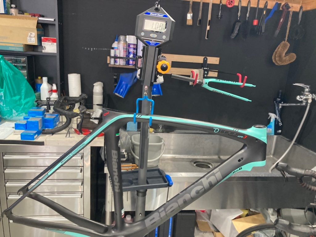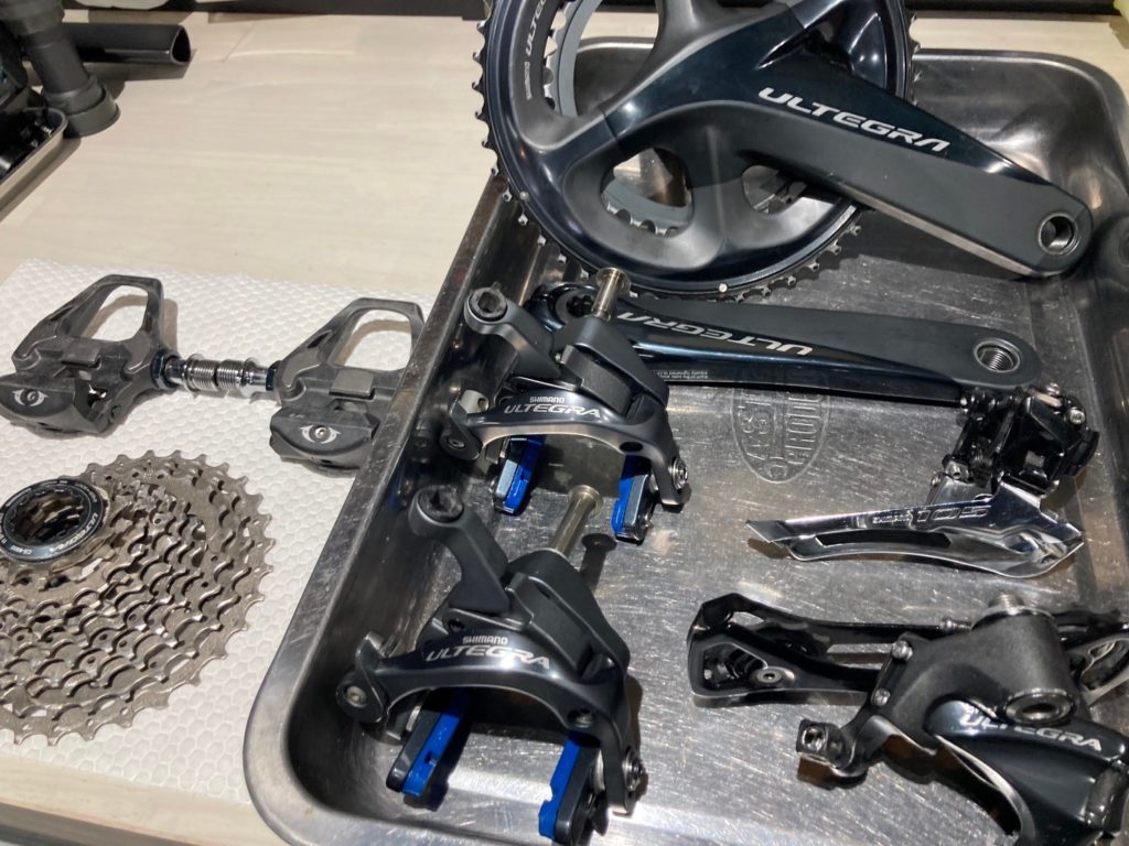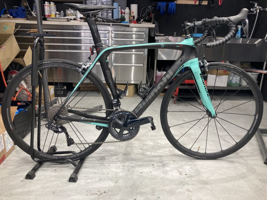 今回、「ビアンキ オルトレ XR3」に乗られているオーナー様より、コンポーネントを機械式アルテグラからアルテグラDi2に替えて欲しいとのご依頼をいただきました。