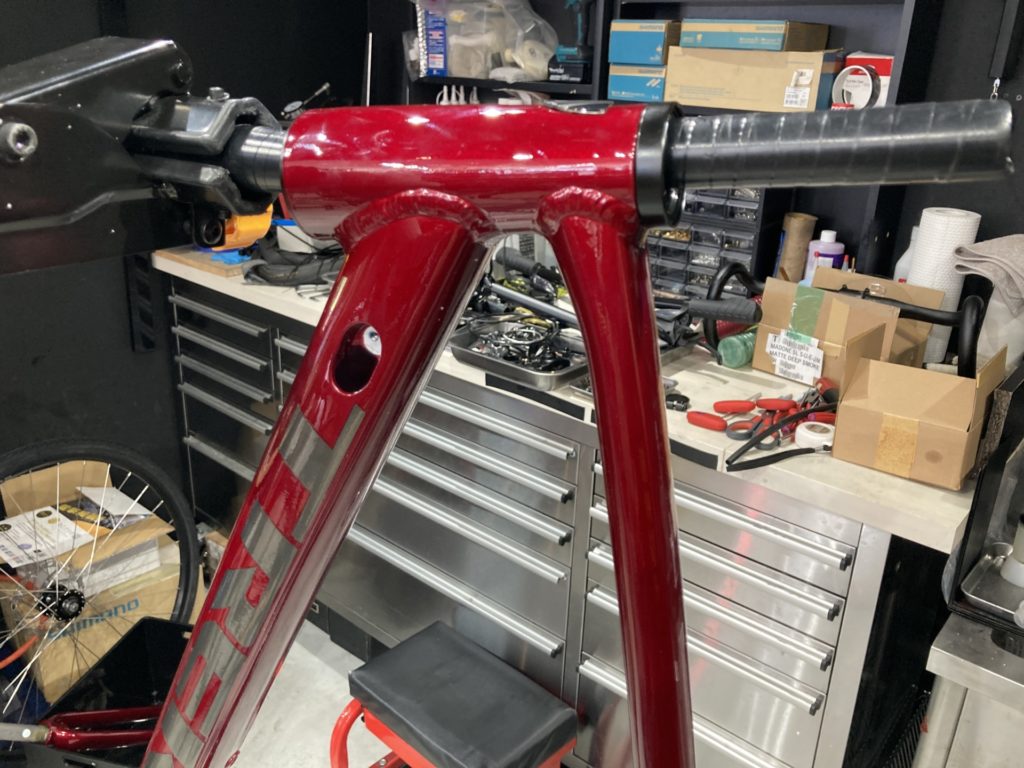 パーフェクト組立ではフレームの細部まで分解し、パーツの取付精度の引き上げおよび日本の高温多湿の環境下でも乗り続けるための整備を行います。