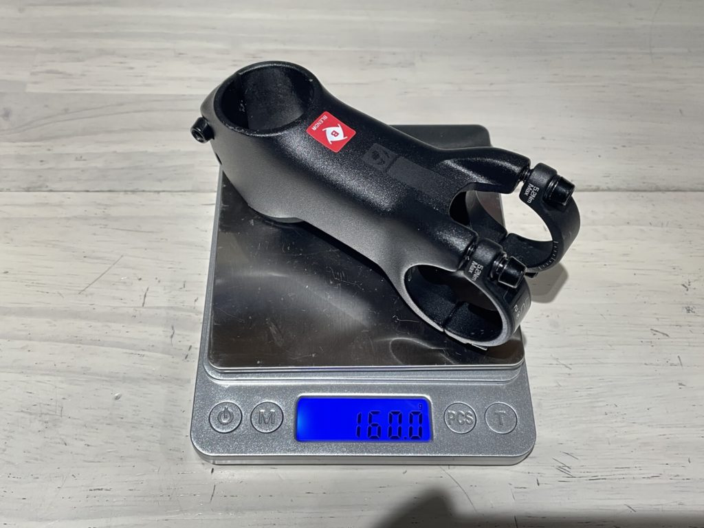 完成車に初めから付いていたステムからDEDAステムに交換したところ「39.5g」の軽量化になりました。