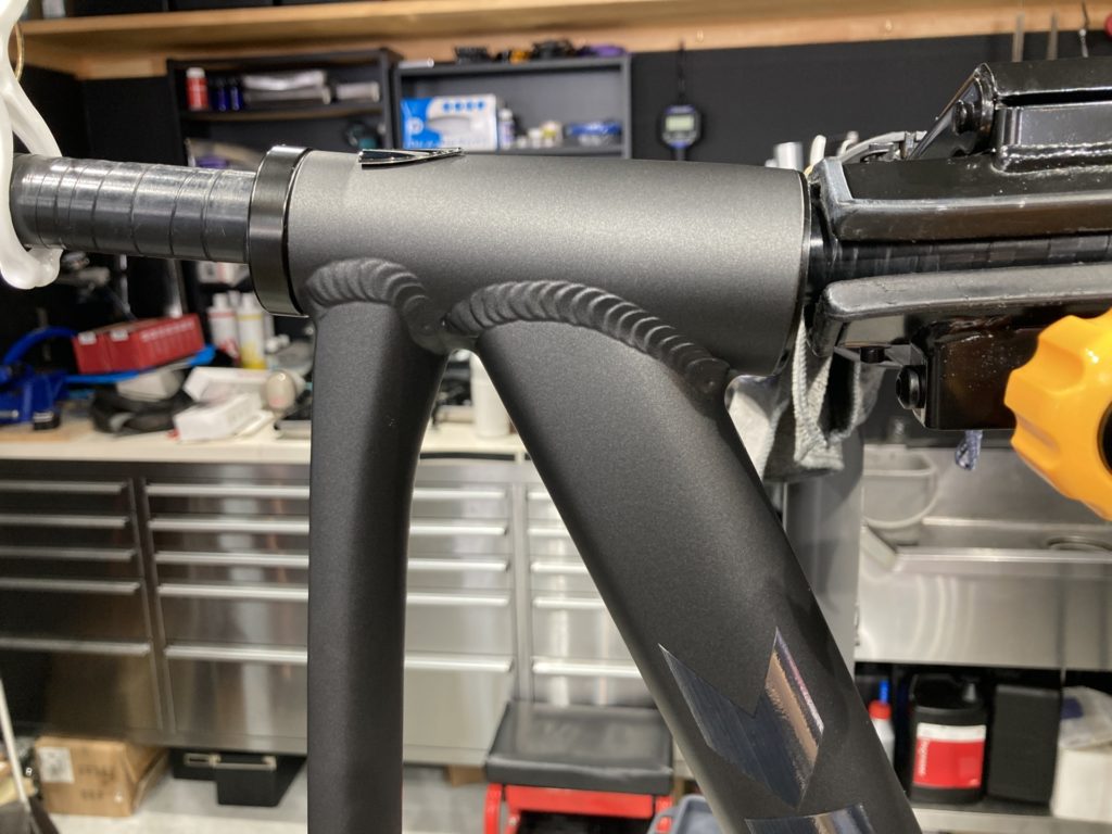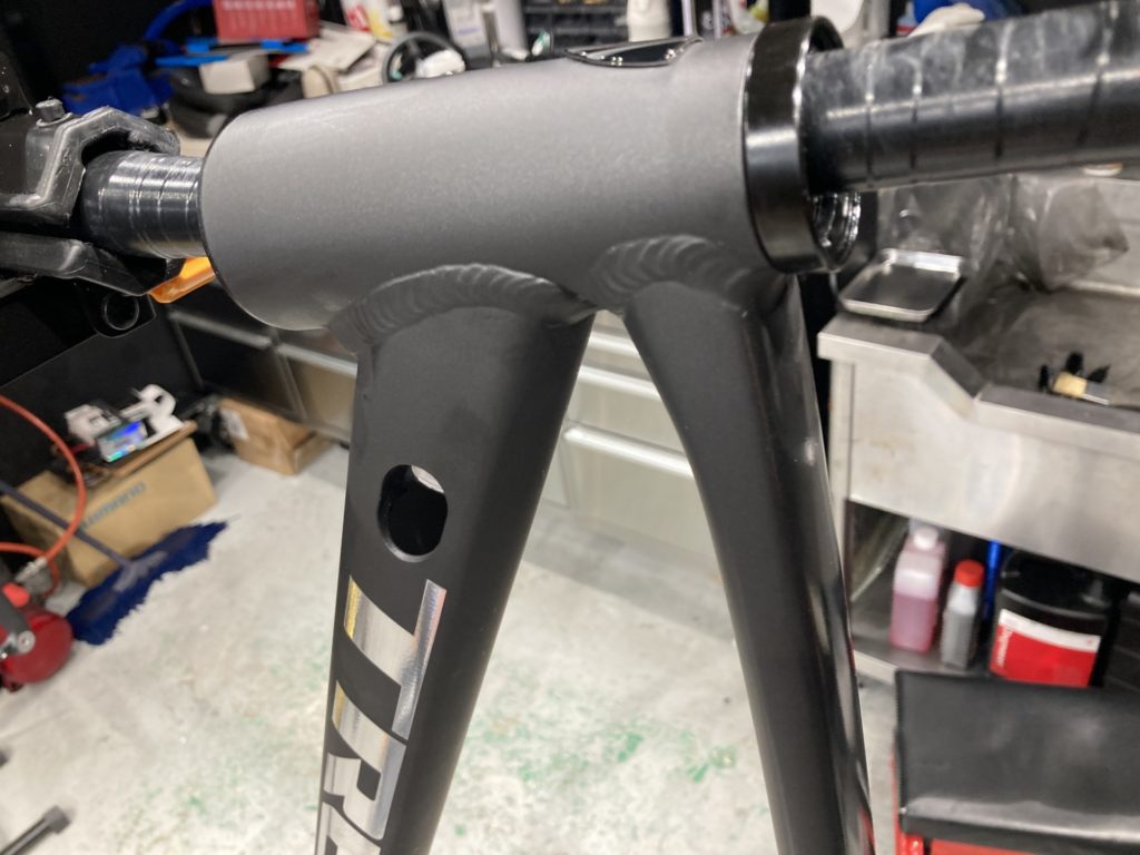 マット塗装のフレームにも施工可能でマット感は維持したままガラスコートが塗装面と一体化し、光の反射率が上がります。