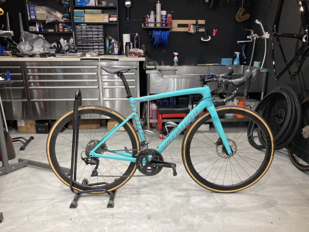 今回、「スペシャライズド ターマック」のオーナー様より、オーバーホールとクレストヨンド社のガラスコーティング「ガラスの鎧 & カミナリの鎧」のご依頼をいただきました。