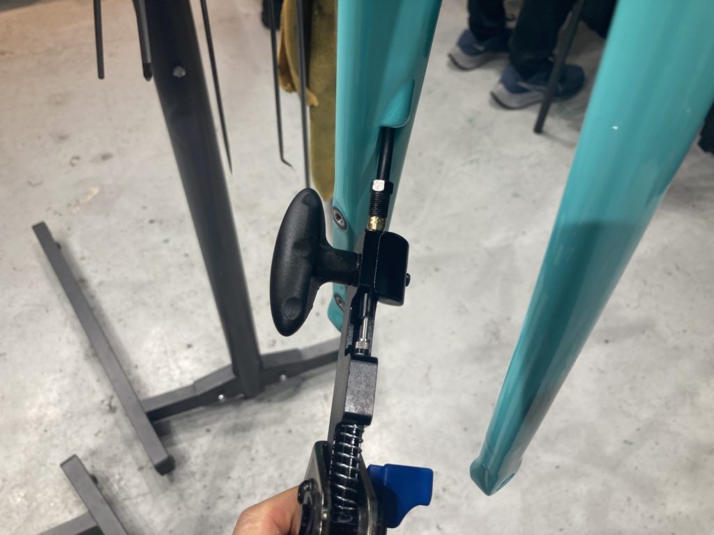 油圧ディスクブレーキの場合、ホース再接続後にブリーディング作業(オイル交換)を行います。