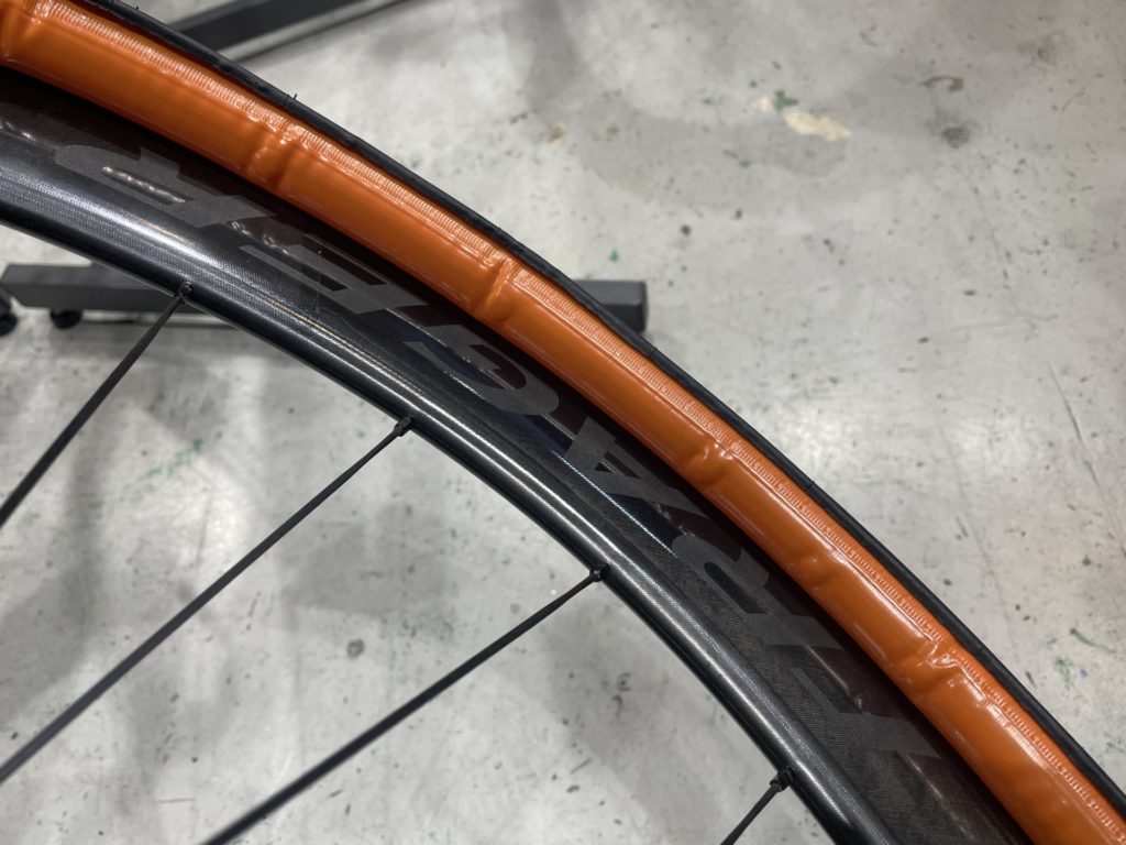 タイヤはPIRELLIのP ZERO RACE クリンチャー 700×28cにMageneのTPUチューブを入れています。