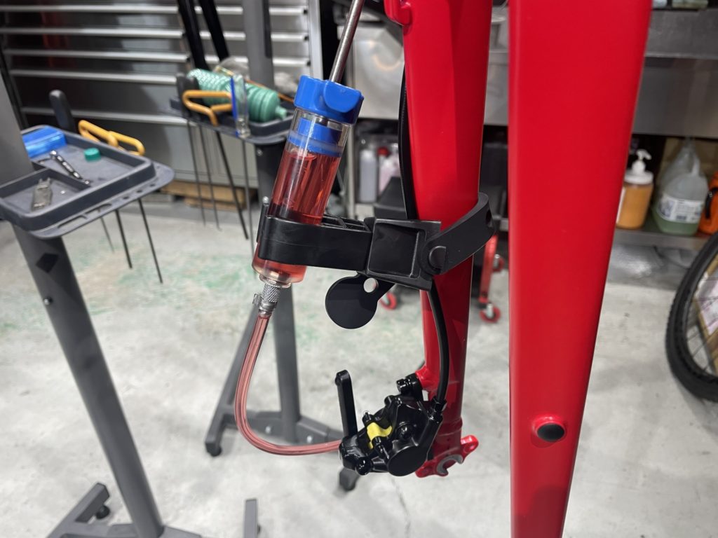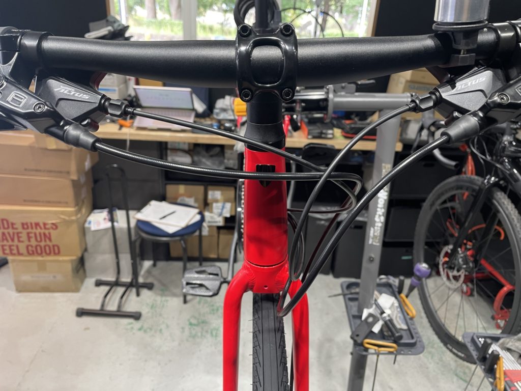 油圧ディスクブレーキであればホースの再接続と併せて新品のオイルに交換しています。