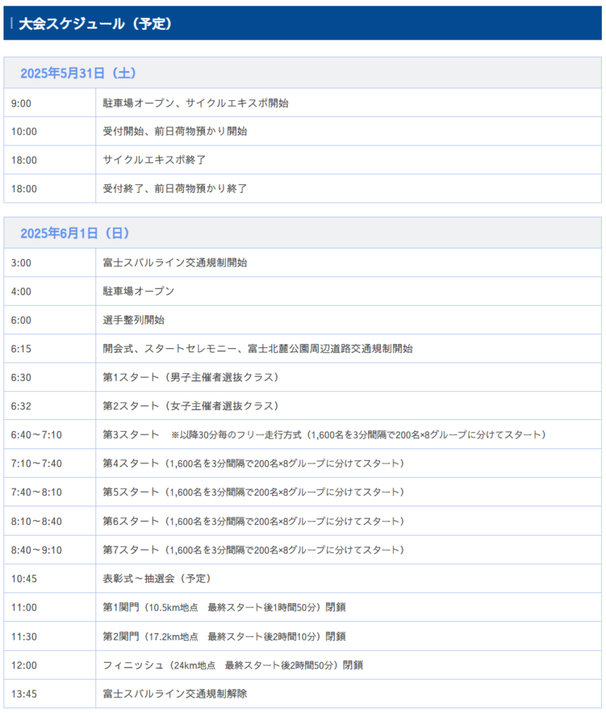 富士山の麓をスタートして富士スバルラインを駆け上がり、富士山五合目を目指す各個人ごとにタイム計測が行われる国内最大規模のヒルクライムレースになります。