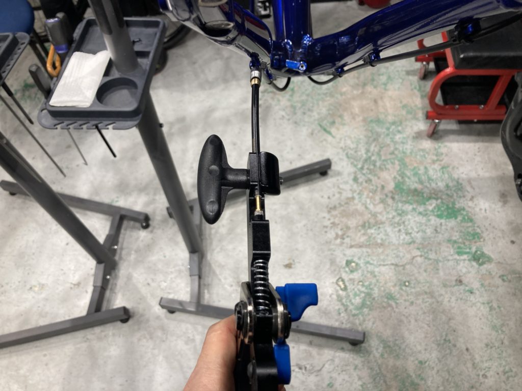 ブレーキホースを一度カットし再接続しているため、新たにブレーキオイルを入れます。
