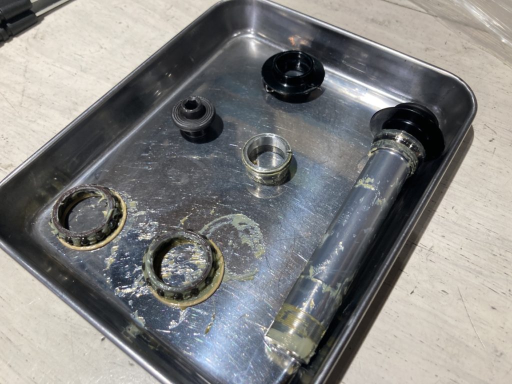 オーバーホールはフレーム単体まで分解して洗浄し、消耗品の交換を行い組み直します。