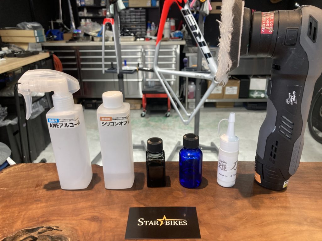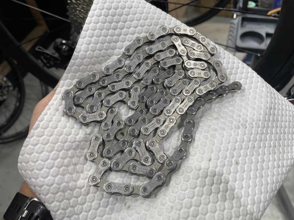 コンポーネントを組み付け調整し、チェーンにはDi2と相性の良いチェーンオイルを塗布し整備が完了します。