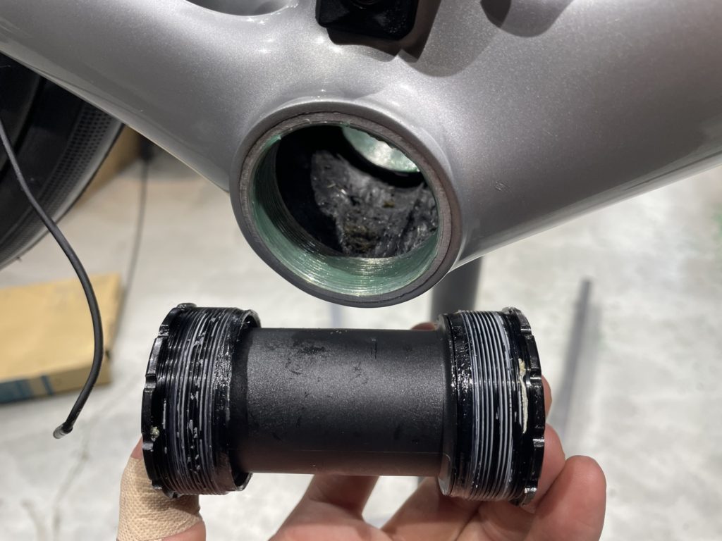 ヘッドのベアリングまわりやボトムブラケットのベアリング受け等、水分が入りやすく錆びやすい部分には錆防止のグリスを多めに塗布することで日本の高温多湿環境下でもできるだけ長く安全な状態で乗れるよう対策します。