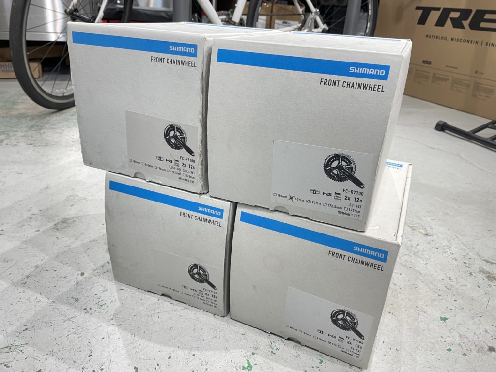 当店のフィッティングでは12速のシマノクランクであれば160/165/170/172.5のクランク長を試すことができます。
