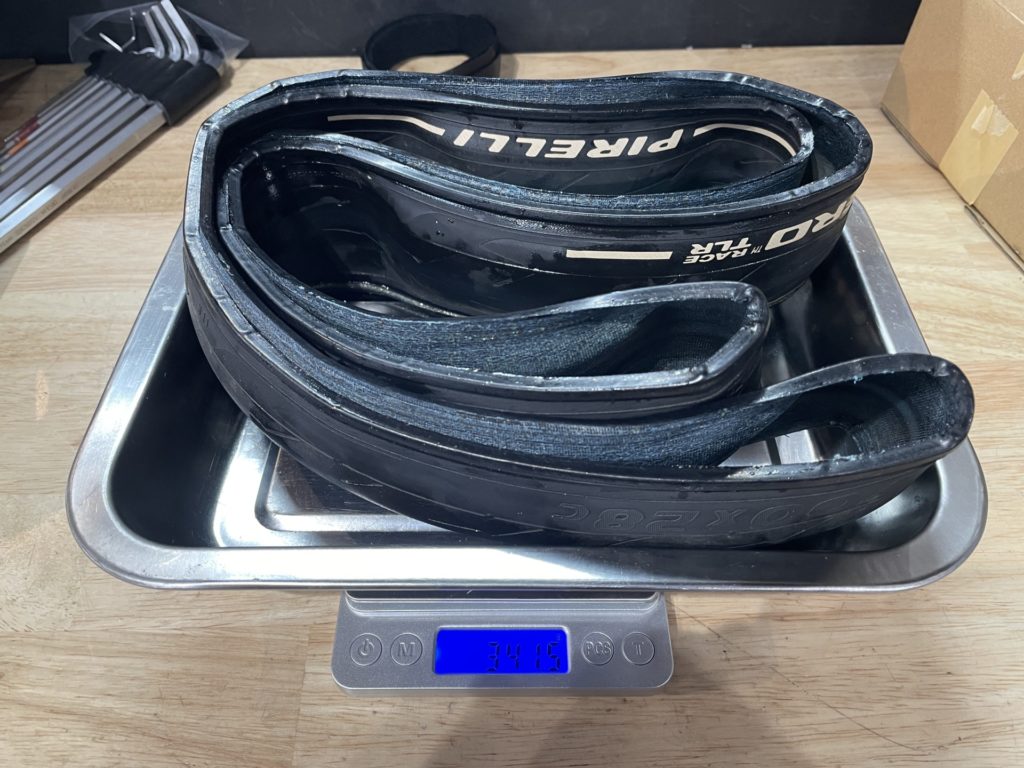 タイヤ:Pirelli P ZERO Race TLR「1本あたり341.5g(固着したシーラント込)」