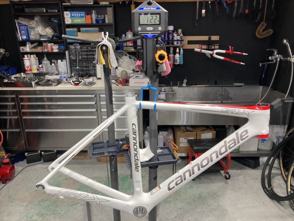 今回、「cannondale SIX CARBON(キャノンデール シックスカーボン」に乗られているオーナー様より、オーバーホールとバイクウォッシュのご依頼いただきました。