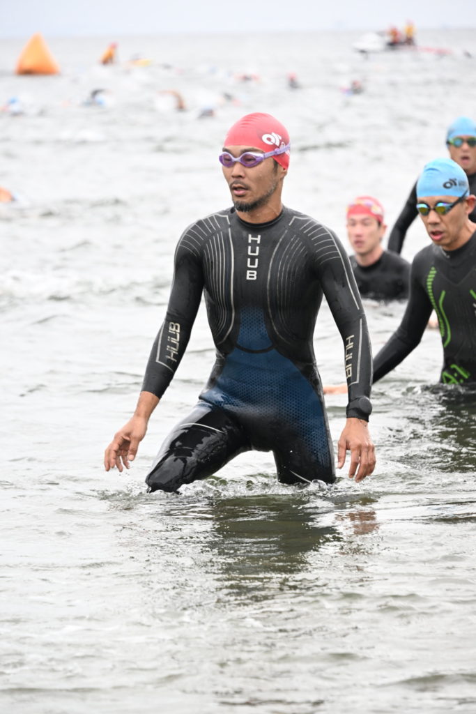 前方の選手を見ながら、フォームを意識しながら、出来るだけ強度を上げる泳ぎに徹する。ギャラリーが多い桟橋が見えてくるともうすぐ砂浜だなと安堵する。ちらっとGarminウォッチを見ると20分ほど。これでは過去最も遅いペースになってしまうと思い、2周目はペースを上げて泳ぎたい!