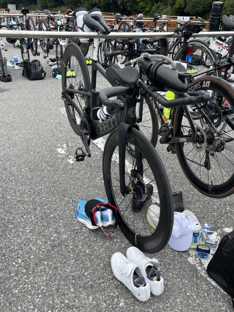 トランジションエリアの時間も競技時間なので、「スイム→バイク」と「バイク→ラン」を効率よく切り替えられるようにセッティングしていきます。