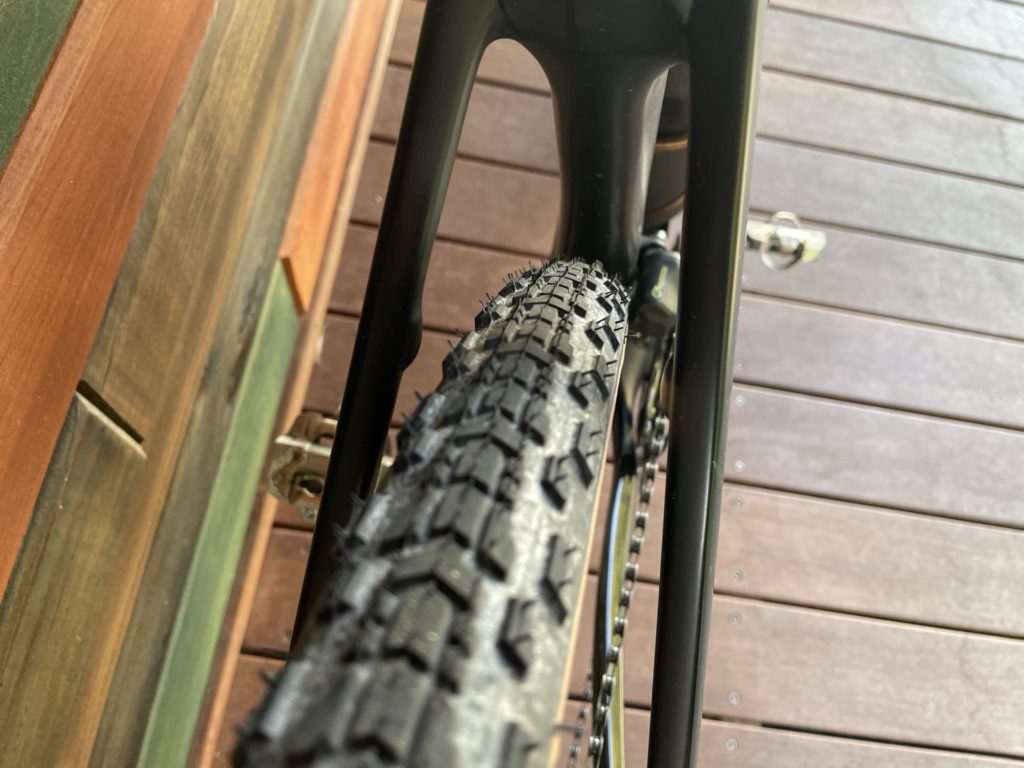 これだけタイヤのノブが凸凹したタイヤならば目的はグラベル(砂利道)ライド!
