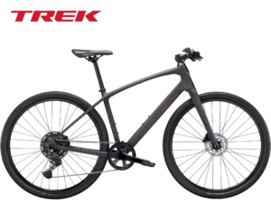 FX Sport SL 4は、軽量ロードバイクの速さにフラットバーの快適さや操作性を組み合わせた、カーボンフィットネスバイク。1xドライブトレインがギア比の幅を減らすことなく変速操作をシンプルにすることで、このハイパフォーマンスバイクは単独でのトレーニングライドからハイペースのグループライドまでを楽しめる。