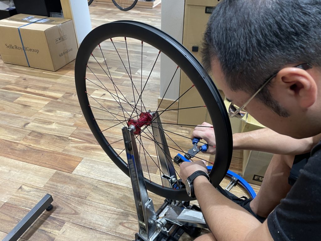 スポークテンションも自由に変えられるため、今回は踏んだ分だけカッチリ反応し、走っていて楽しい剛性高めの調整を行いました。